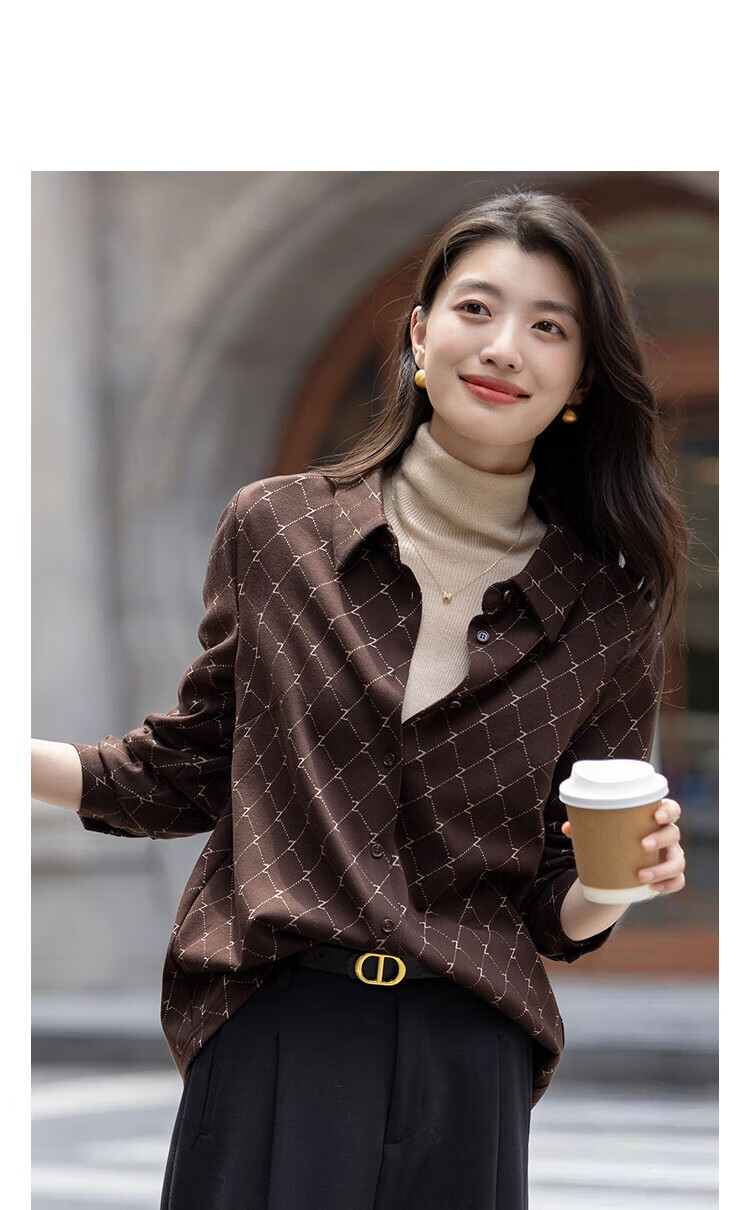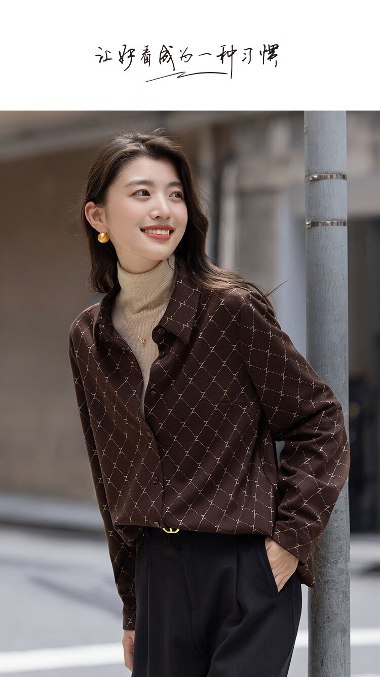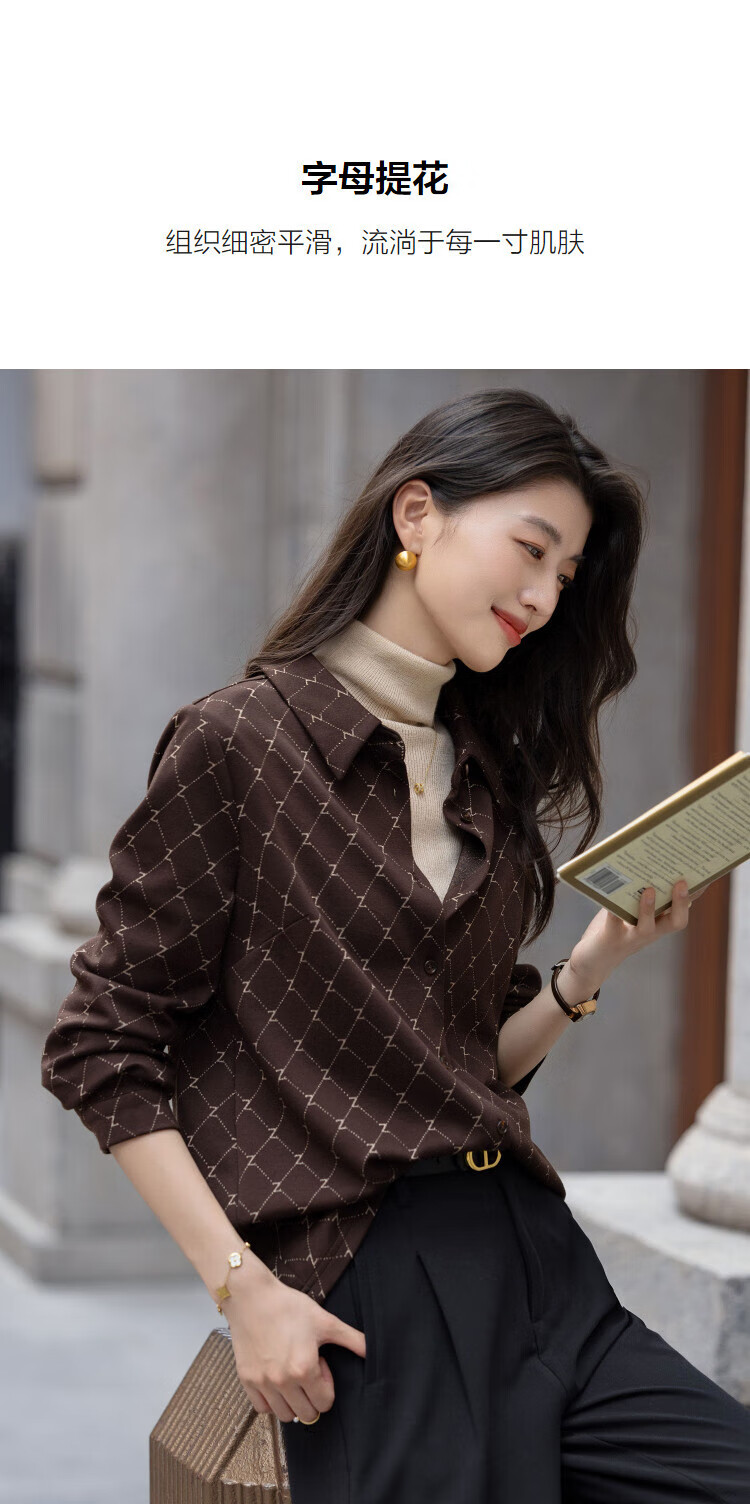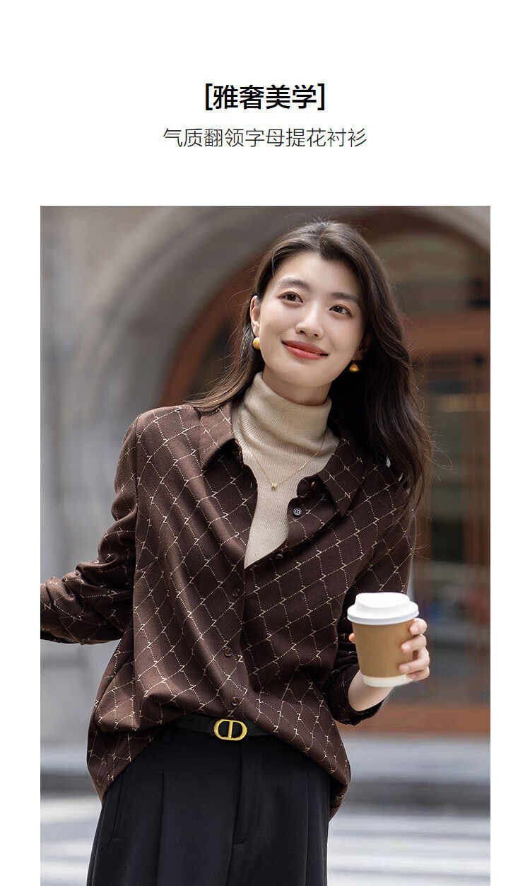 Demana Elegant Aesthetics Winter Temperament Commuting Lapel Letter Jacquard Shirt Loose Tibetan Flesh Shirt Women's Top