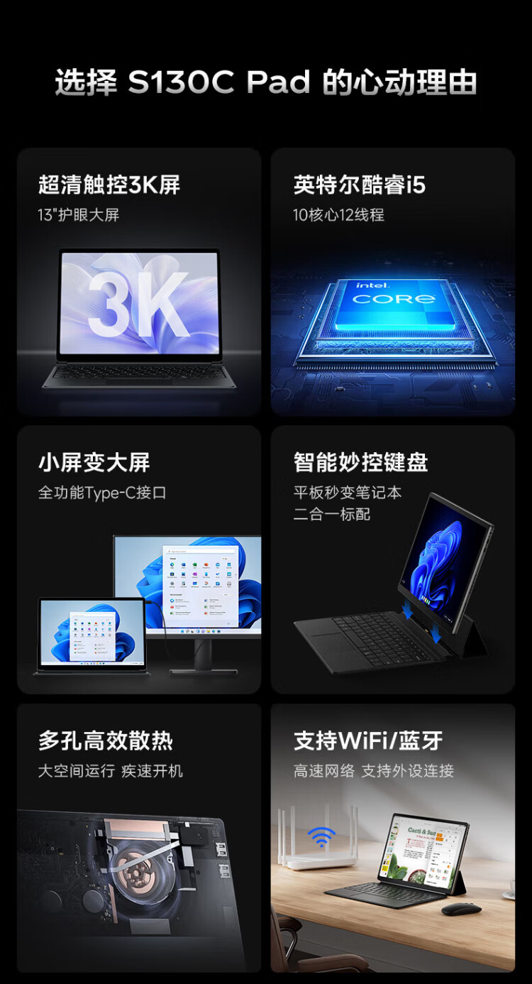Lenovo Super S130C 2-in-1 laptop tablet 3K full screen I5-1235U 16G 1T Windows 11 system