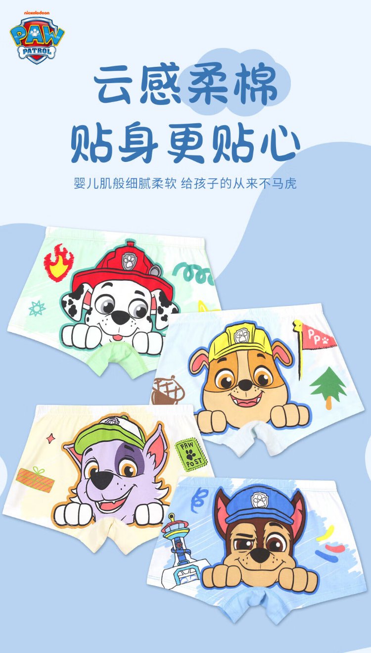 PAW PATROL children's underwear four-corner boys' underwear medium and large children's boxer bottoming shorts 7A antibacterial PA1941 110