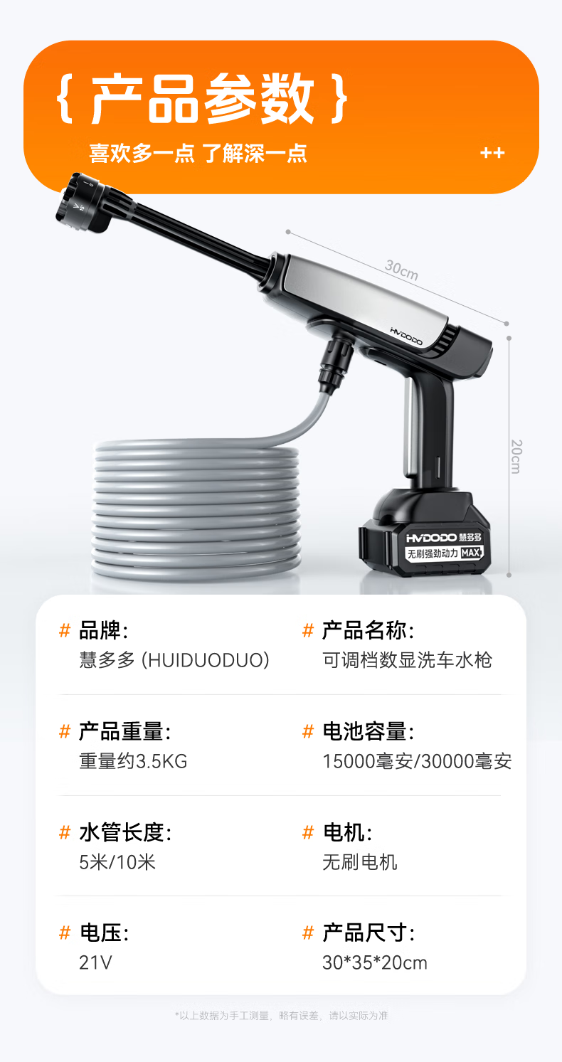 Huiduoduo car washing machine, high-pressure water spray gun for car washing, household car brushing, full set of powerful floor washing, rechargeable mobile cleaning machine, portable