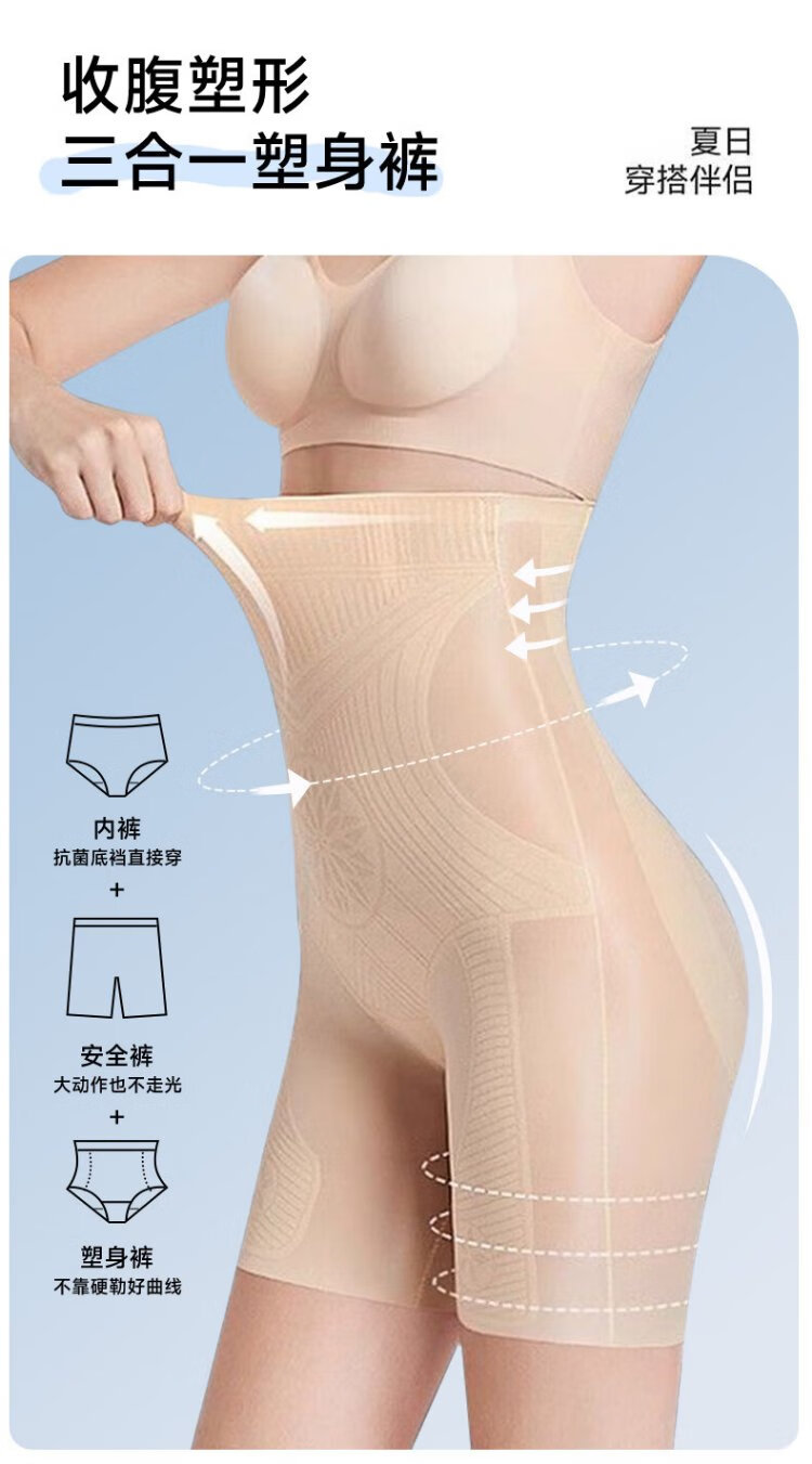 Belui High Waist Tummy Slimming Pants Ice Silk Panties Women's Body Sculpting Corset Waist Lifting Buttocks Lightweight Seamless Bottoming Safety Pants