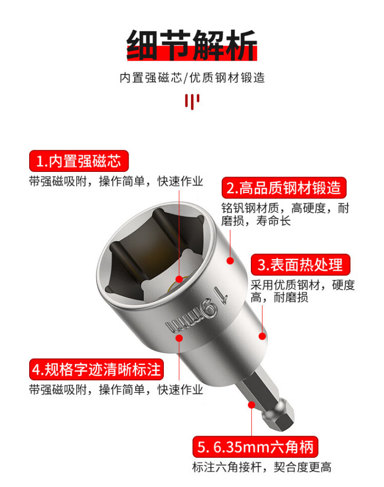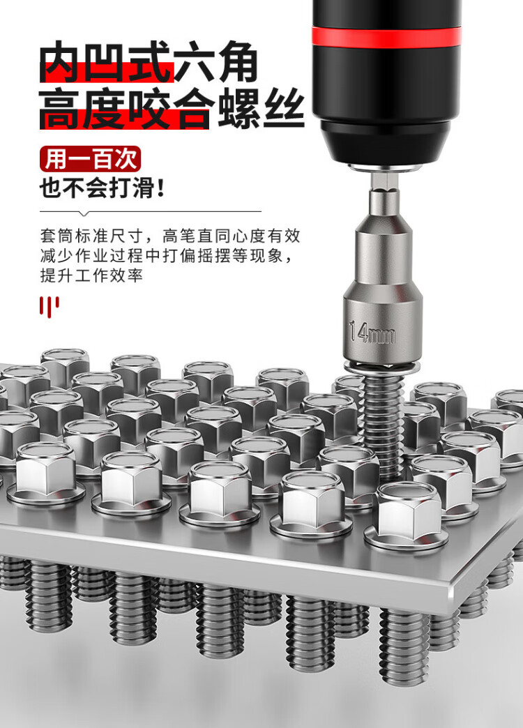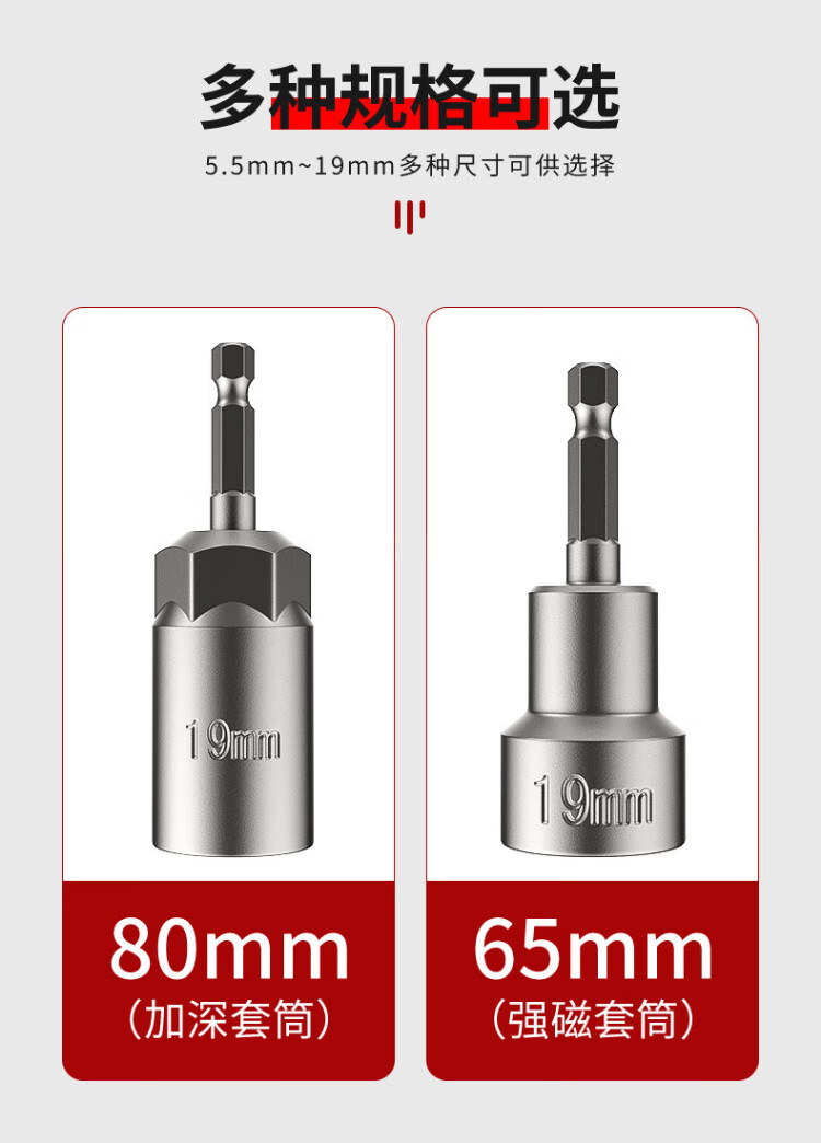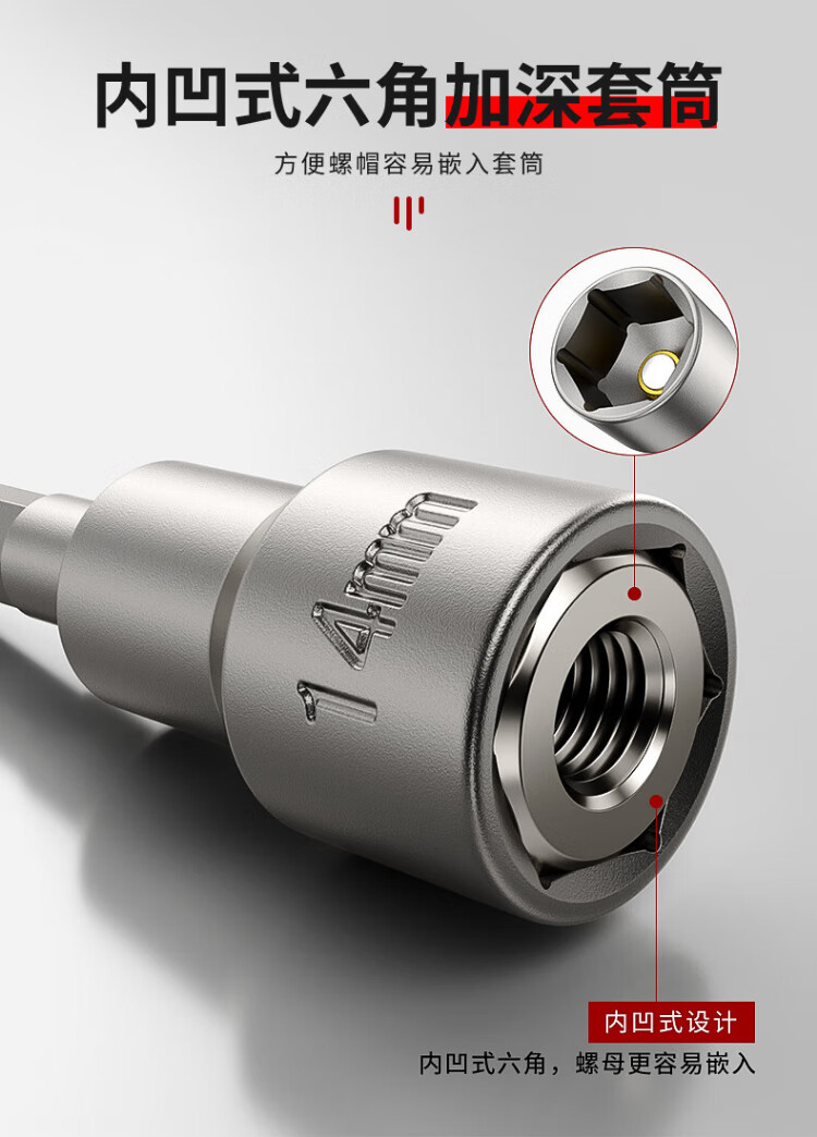 Jingkai Deepening Socket Bit Electric Wrench Socket Head Hand Electric Drill Hexagonal Extended Pistol Drill Wind Batch Tool 7-piece Set