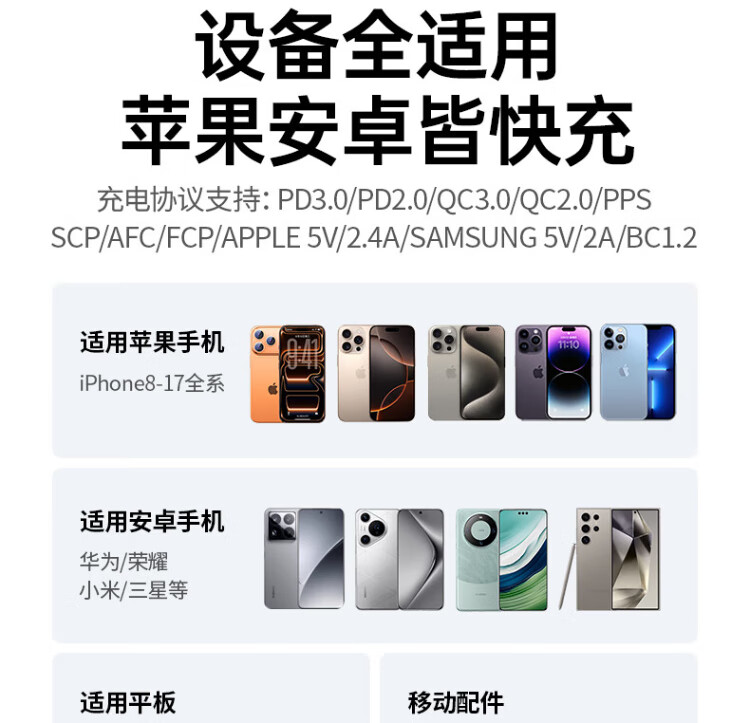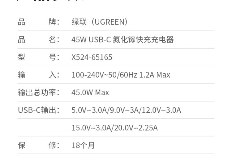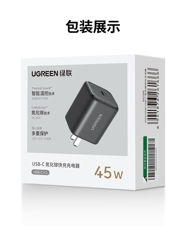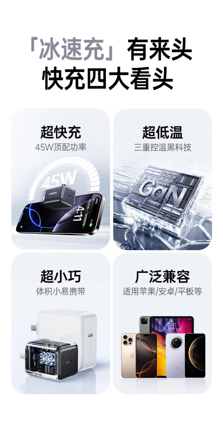 绿联【更配新机40W】45W充电器适用苹果iPhone17/16/15ProMaxAir三星手机ipad/40W氮化镓Type-C快充头