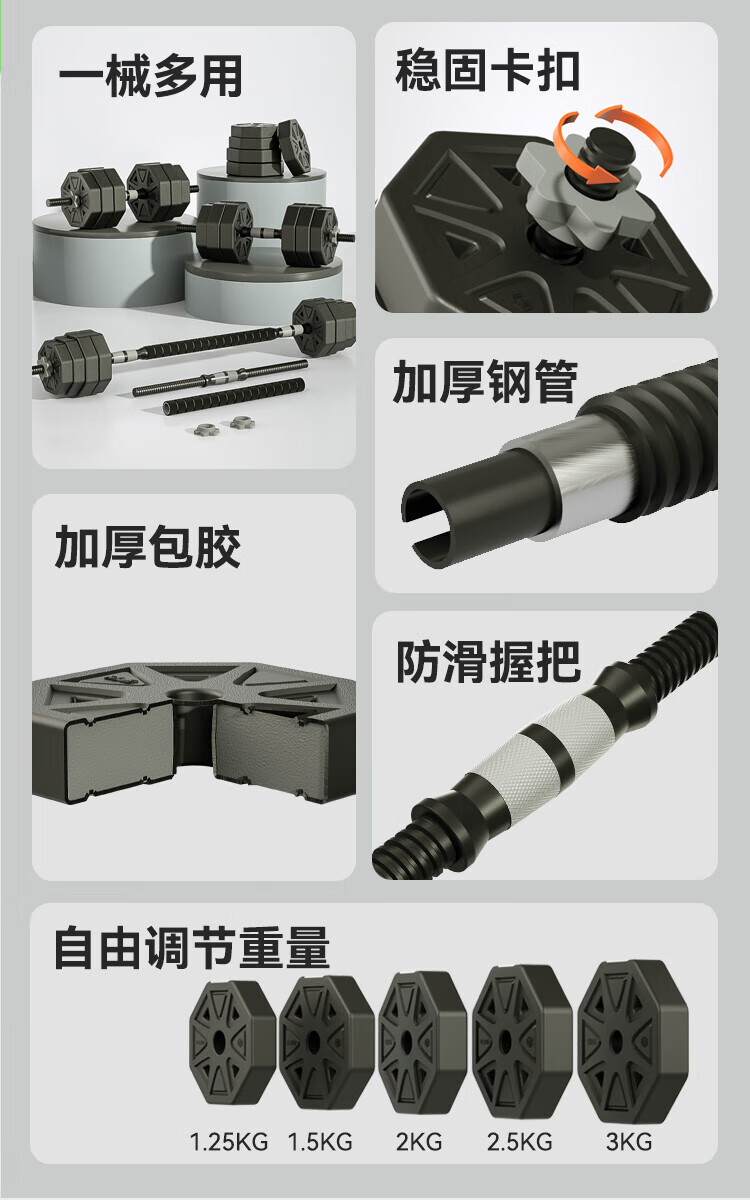 Made in Tokyo, dumbbell barbell combination set 20KG adjustable and disassembly octagonal stable model