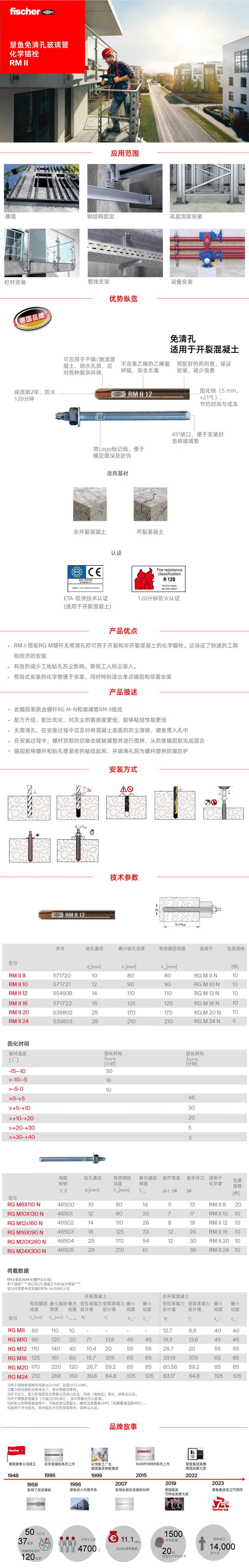 Fischer clear-hole-free glass tube chemical anchor RM II with RG M screw is suitable for cracked and non-cracked concrete RGM12X160 N single screw 10 pieces/box