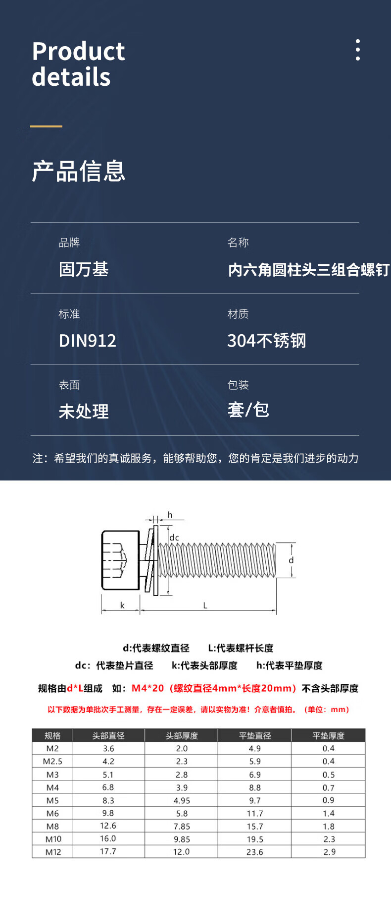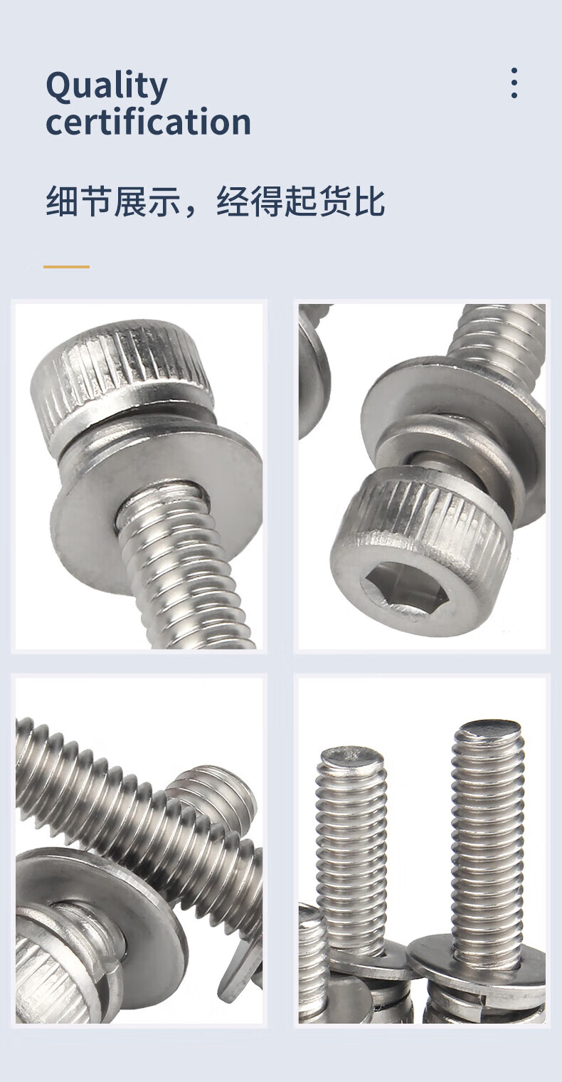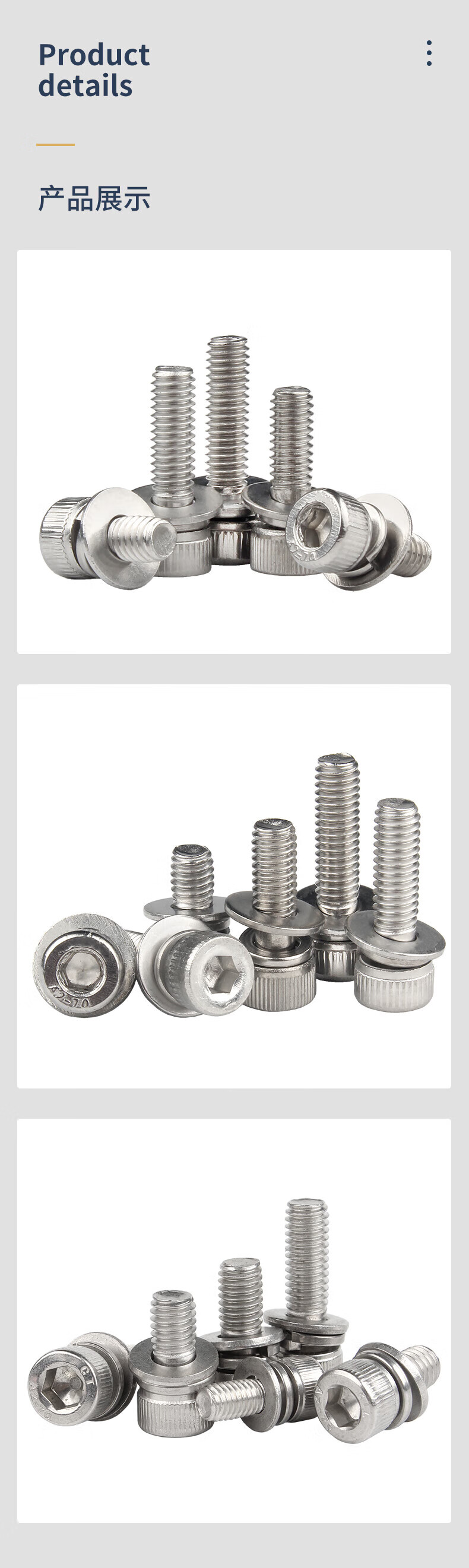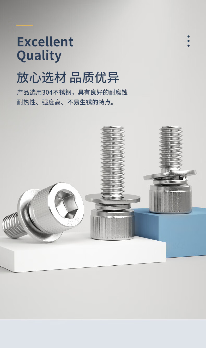 GUWANJI hexagon socket cylindrical head three combination screws 304 stainless steel hex socket screws with flat spring washers M6x20x12 20 sets