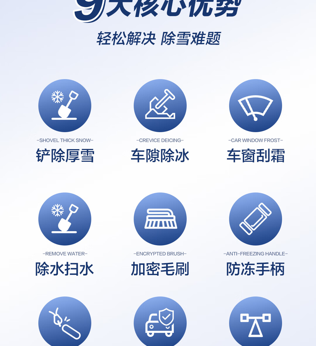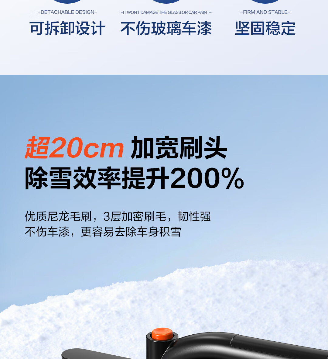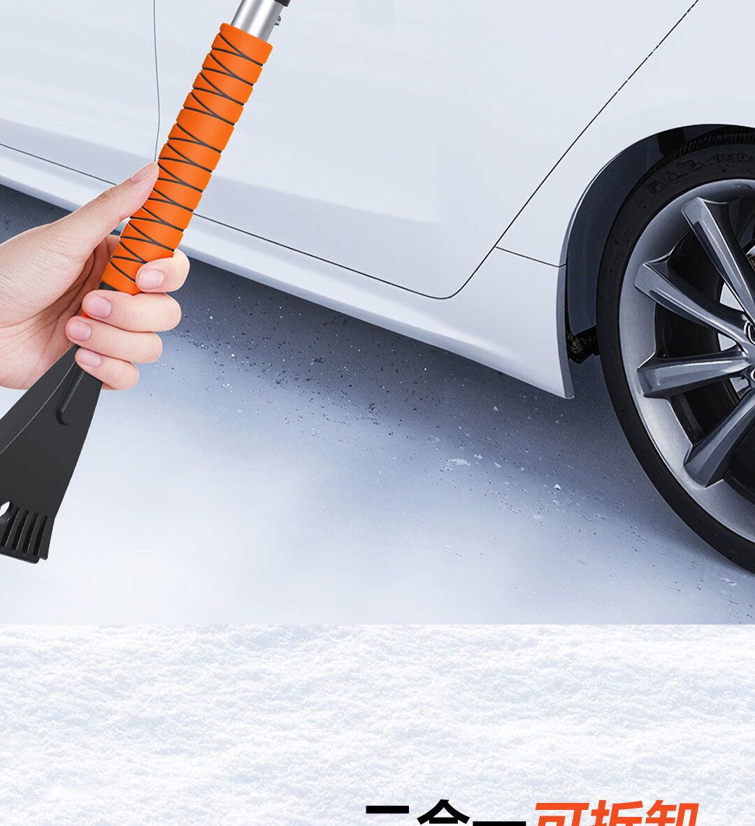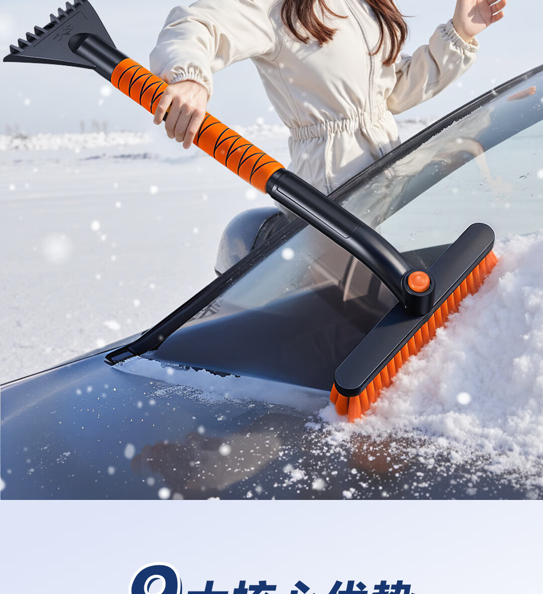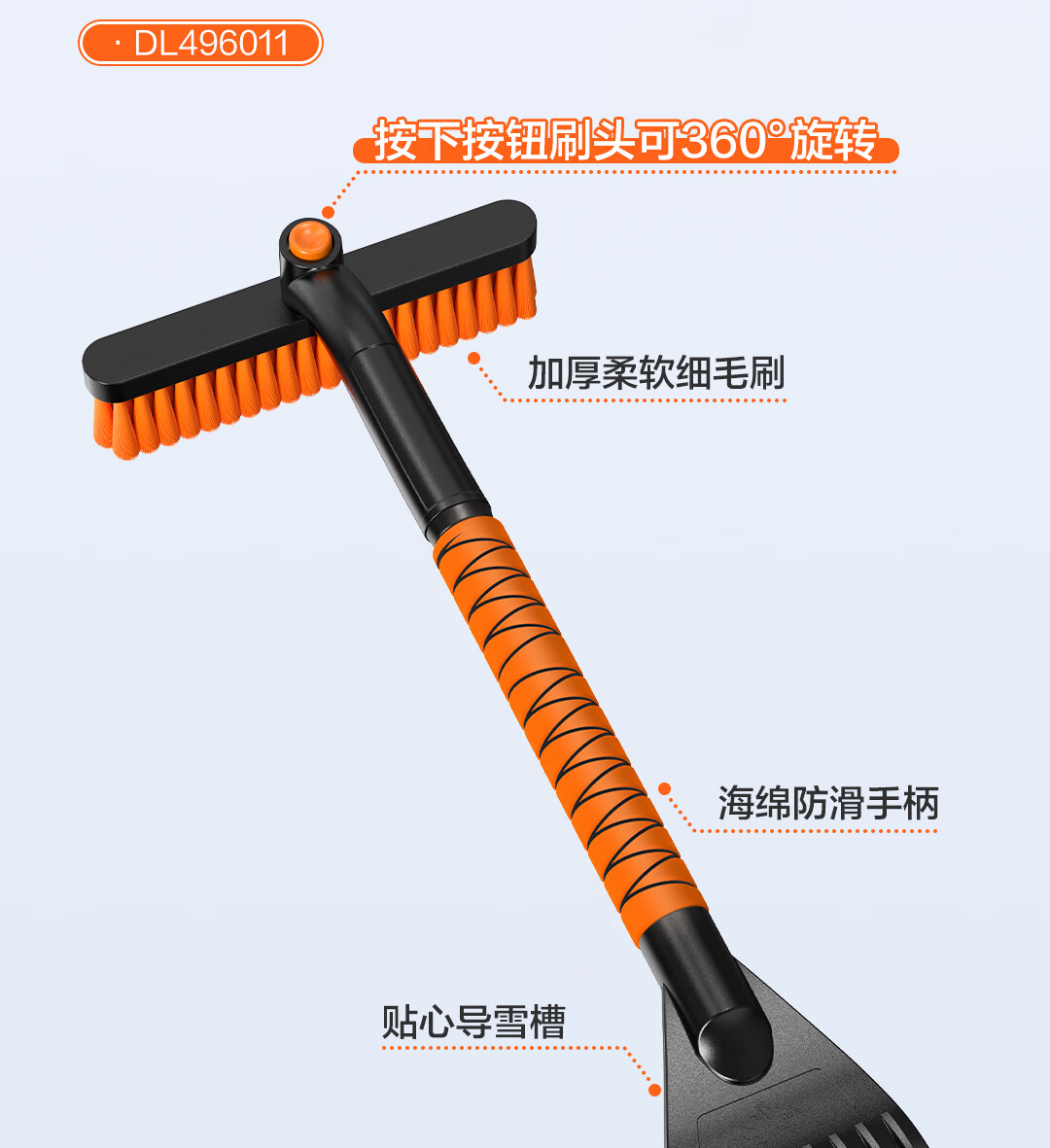 Deli car snow removal shovel snow brush rotating brush head multi-functional glass scraper winter snow clearing and defrosting ice shovel artifact