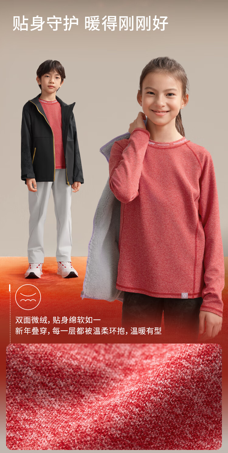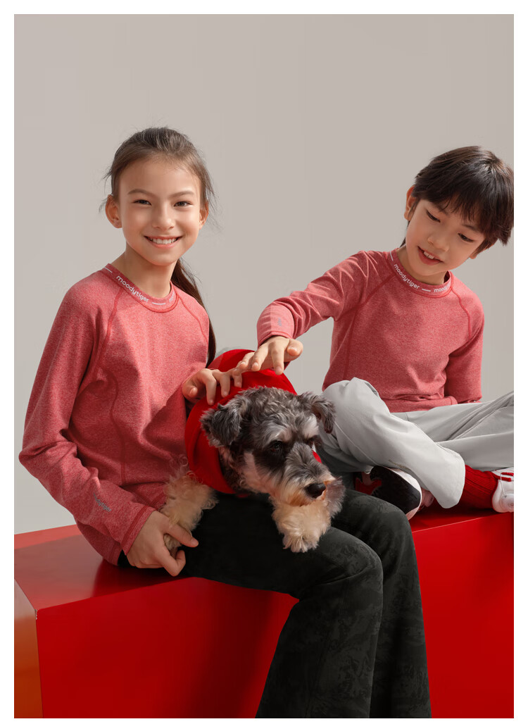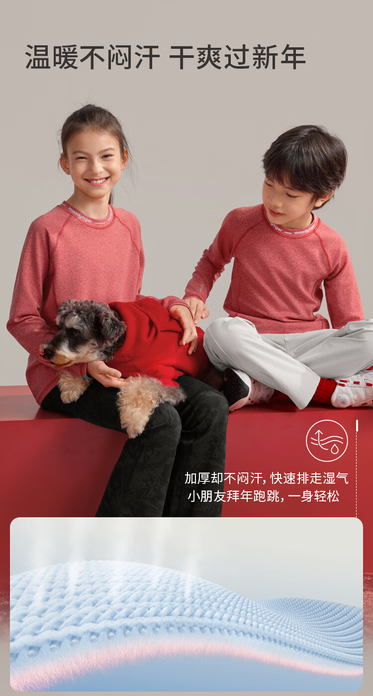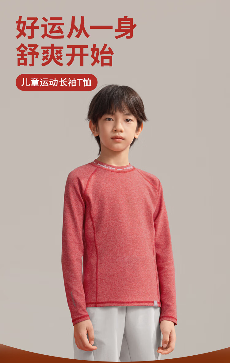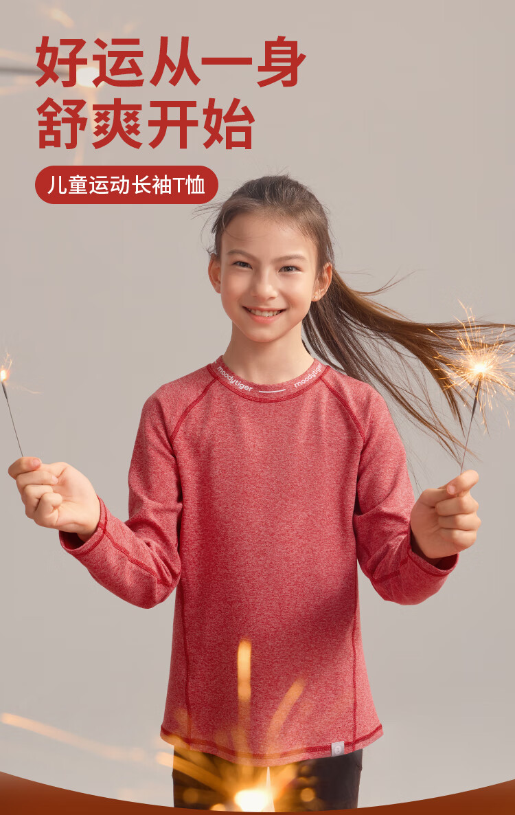 Moodytiger New Year series children's long-sleeved T-shirt 26 years new tops for boys and girls round neck breathable stretch sportswear