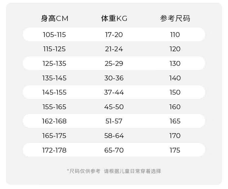 China (cm) 160-165/84-86 165-170 / 88-90 167-172 / 92-96 168-173 / 98-102 170-176 / 106-110