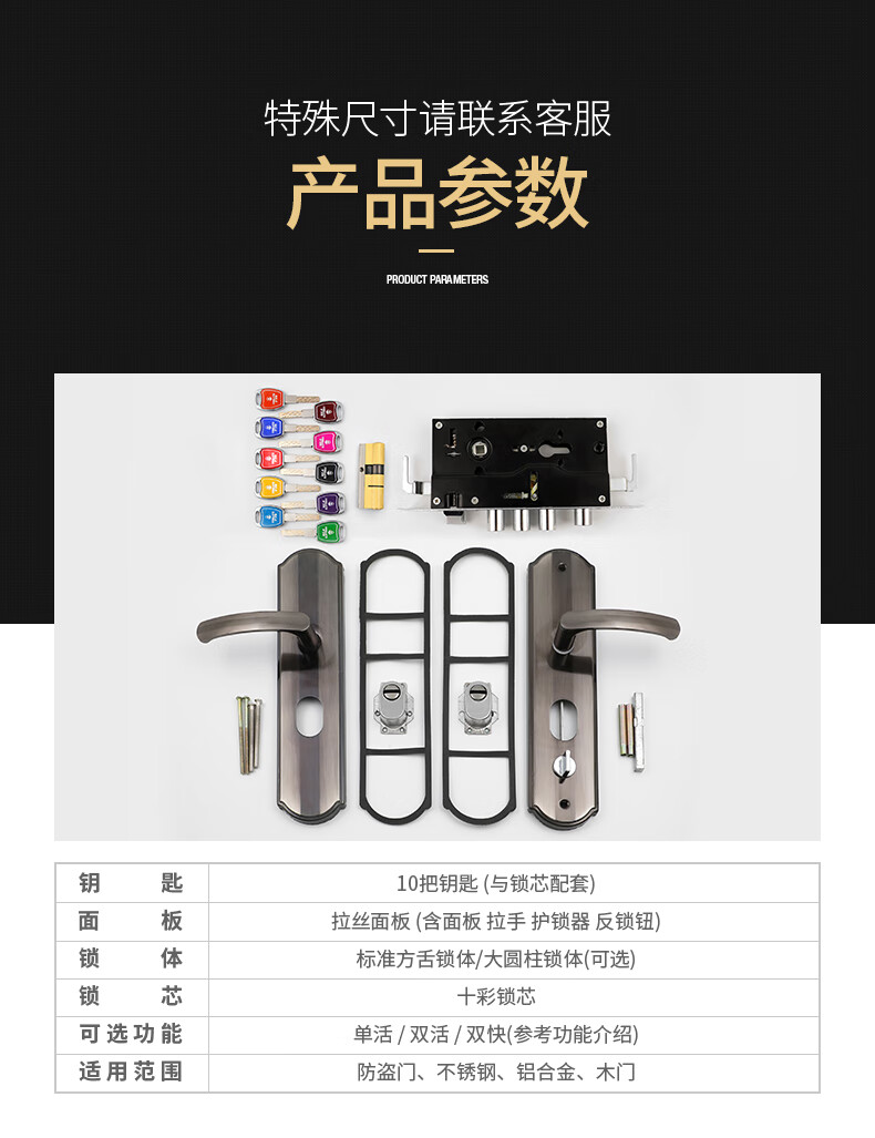 Seven Samurai Anti-theft Door Lock Set Lock Handle Household Universal Heaven and Earth Lock Handle Black Door Lock Wood Interior Door Lock Cylinder No. 16 Panel Handle Pair Default Single Live Right Inner