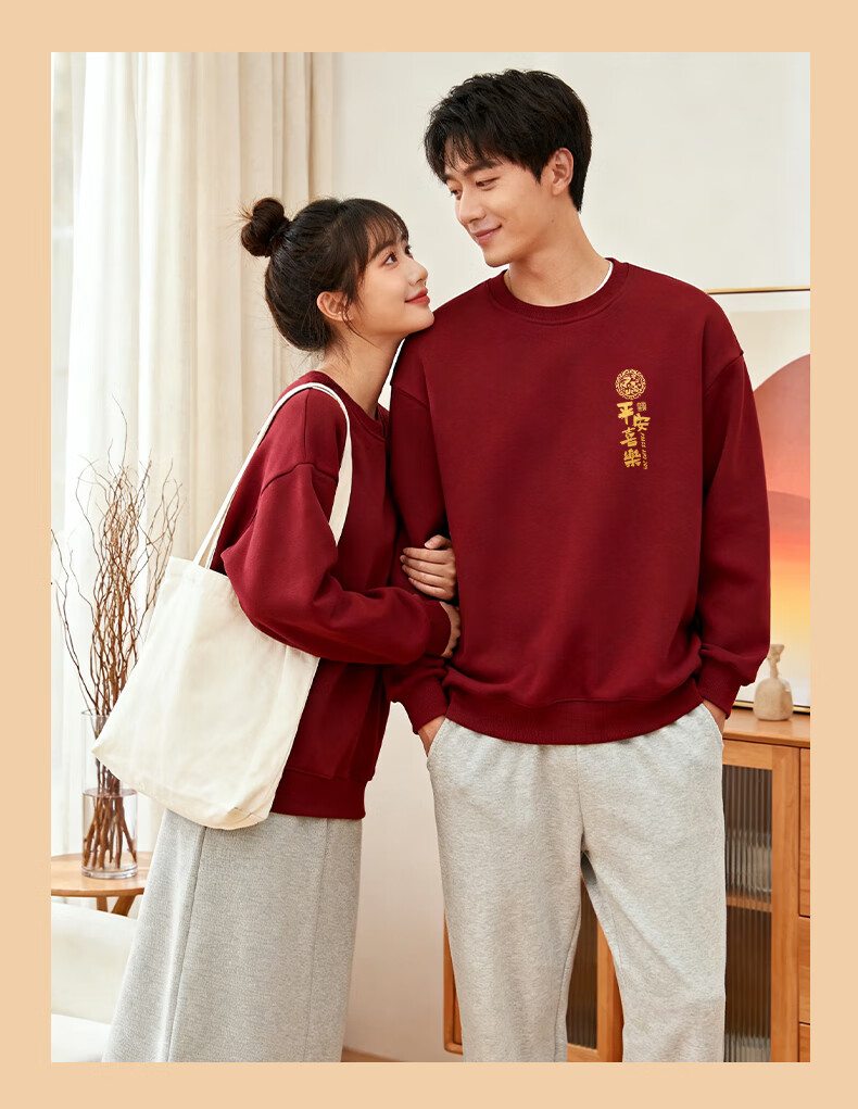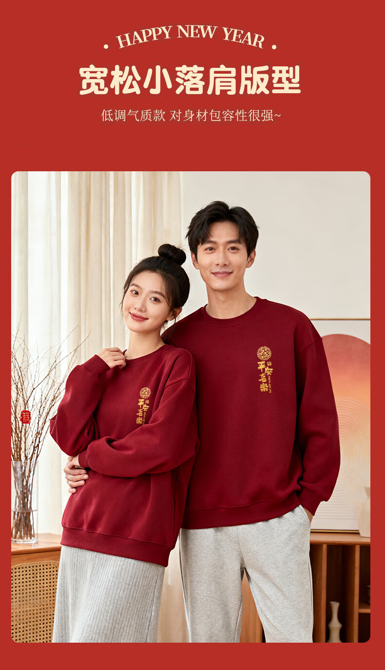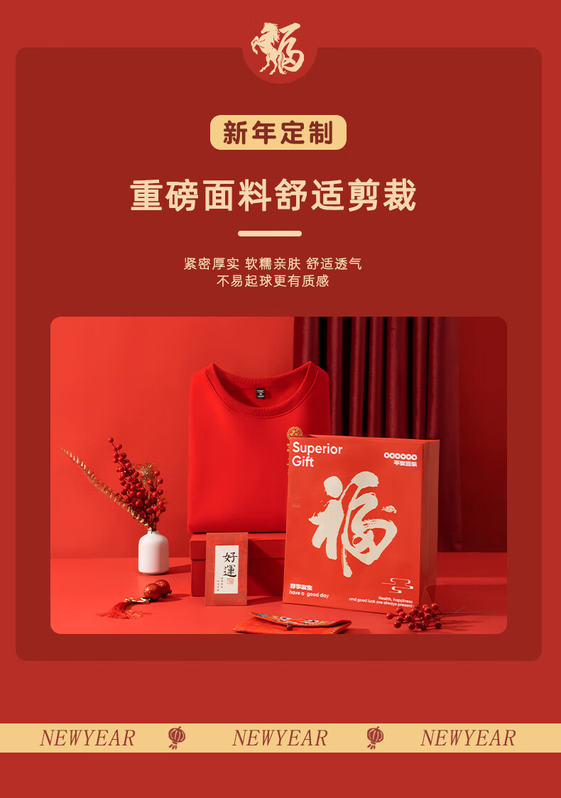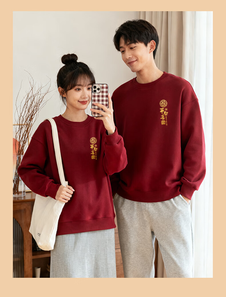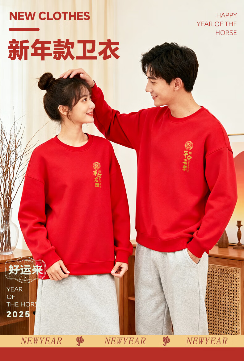 Baleno burgundy sweatshirt for men and women 2026 new year of the horse, longevity sleeve top, peace and joy, gold stamping
