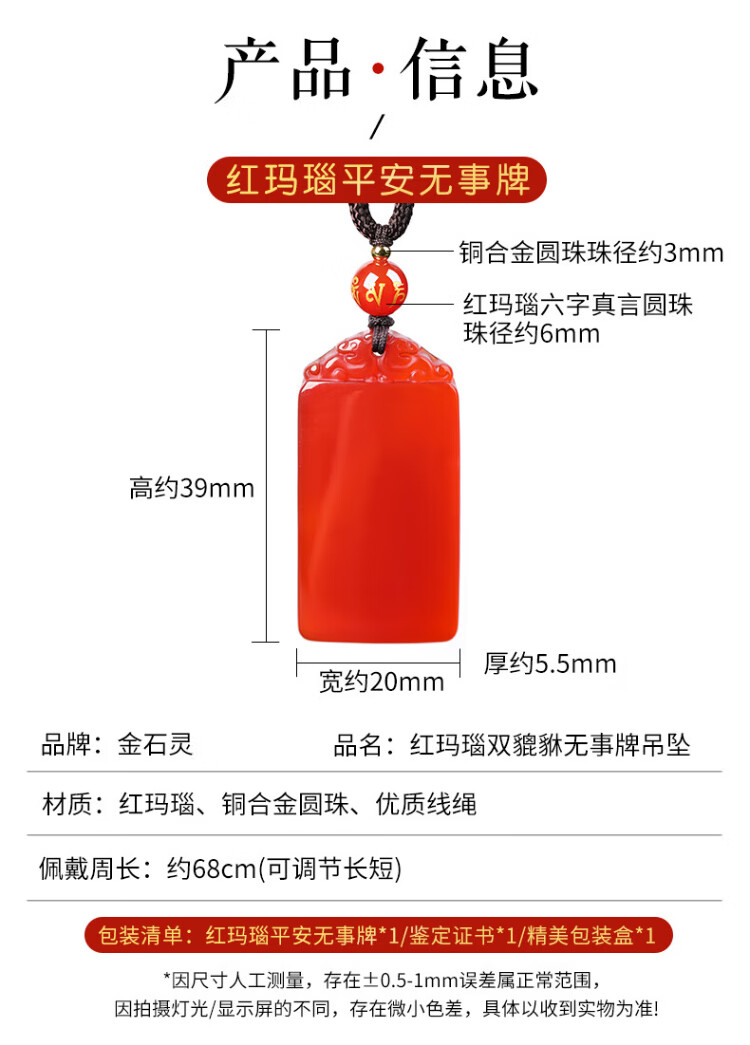 Gold stone spirit collection grade red agate pendant for men and women safe and sound brand amulet couple necklace birth year birthday gift