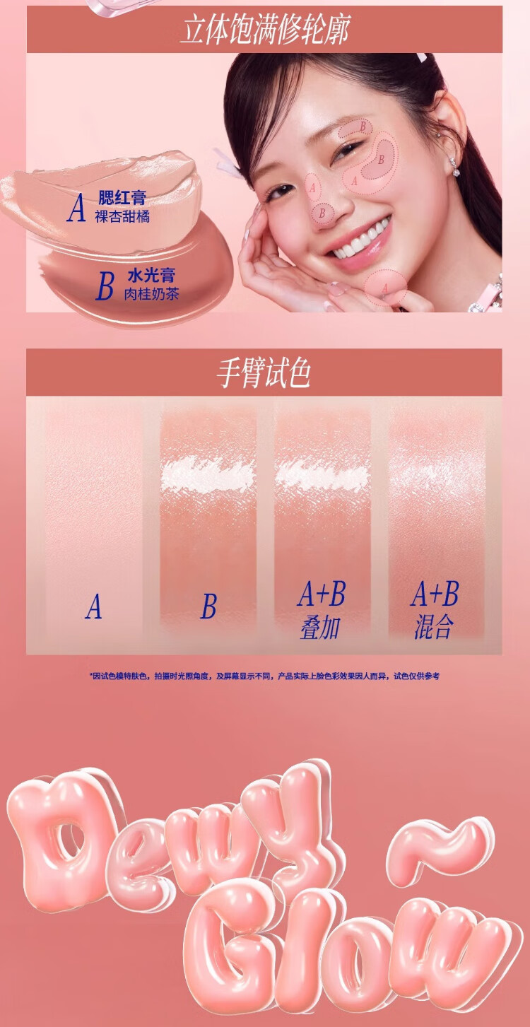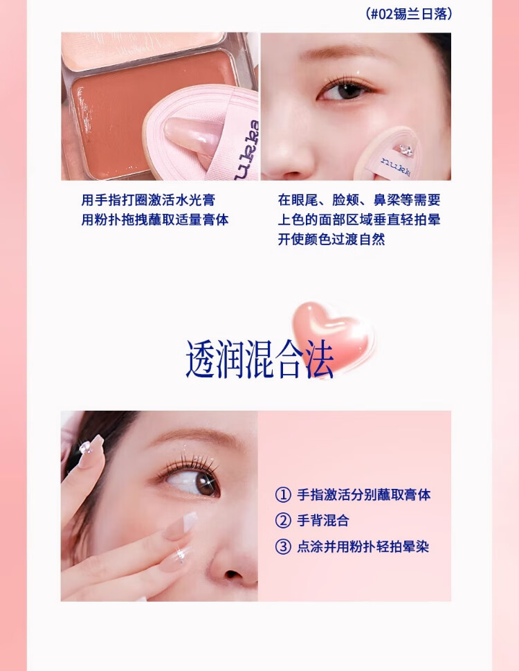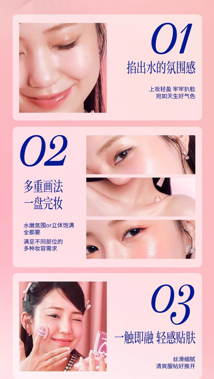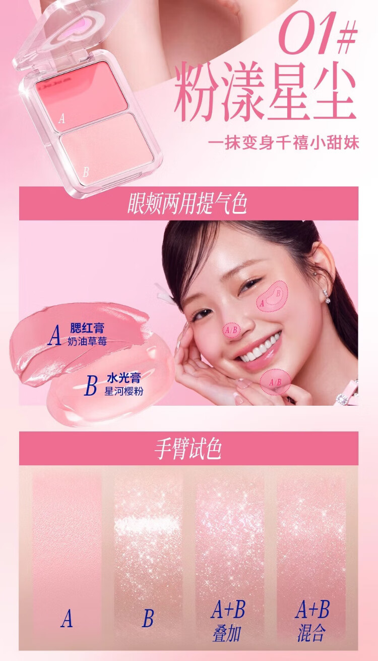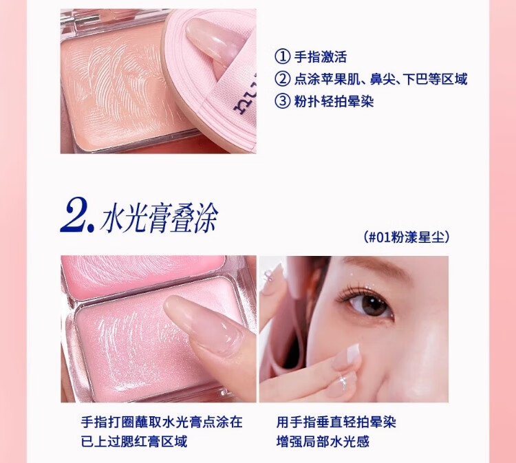 The Law of Vitality Water Glow Cream Blush Palette Highlighting Face Naturally Brightens Three-dimensional Clear Moisturizing Eyes and Cheeks Dual Use #01 Pink Stardust