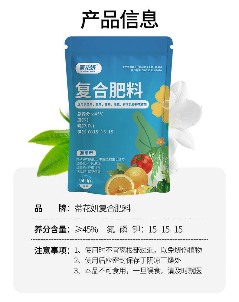 Dihuayan nitrogen, phosphorus and potassium ternary compound fertilizer, organic fertilizer, flower fertilizer, special fertilizer for flowers, green plants, vegetables and fruit trees, universal water-soluble fertilizer