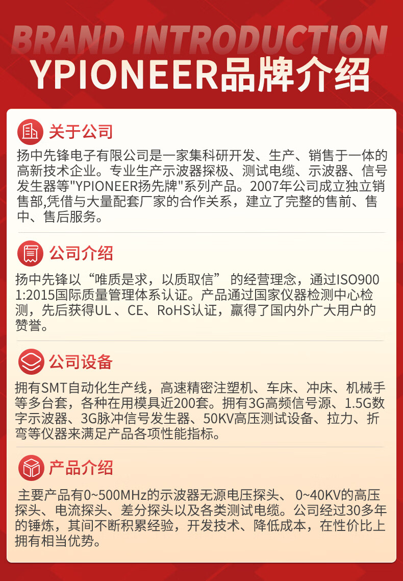 YPIO EER Pioneer YPIONEER oscilloscope probe P2200B bandwidth 200MHz attenuation 10X voltage resistance 600Vp-p