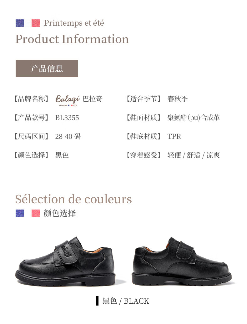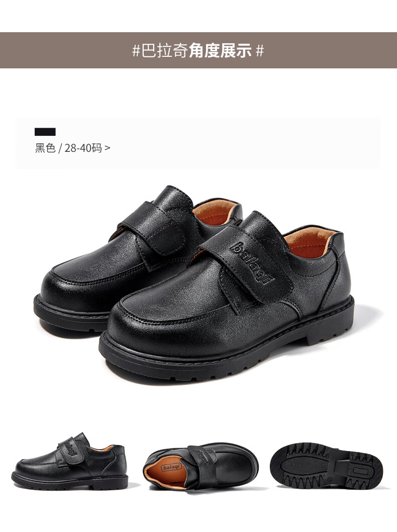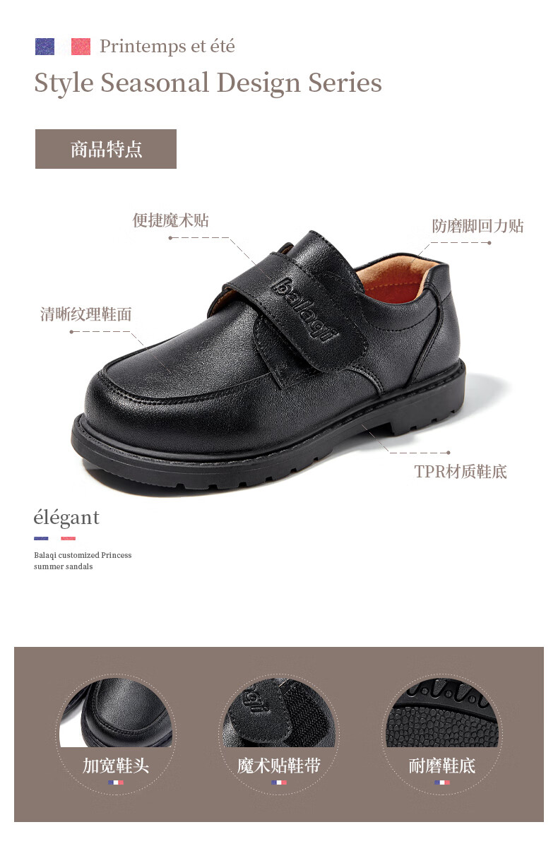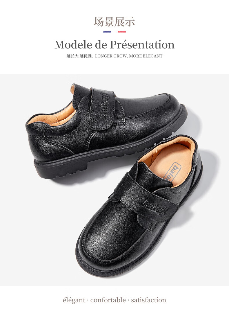 Balachi Boys Classic College Style Black Leather Shoes Boys Spring and Autumn Performance Shoes Soft Sole Shoes BL3355 Black 39