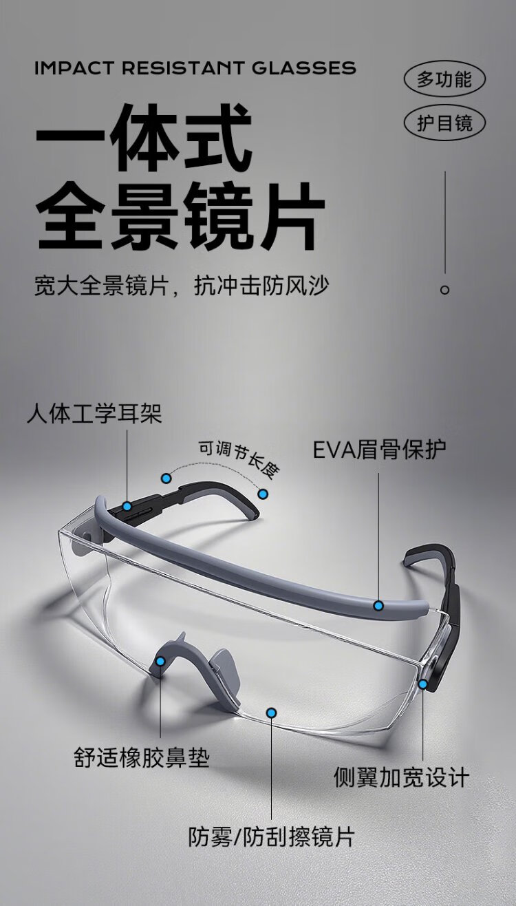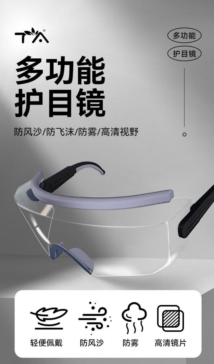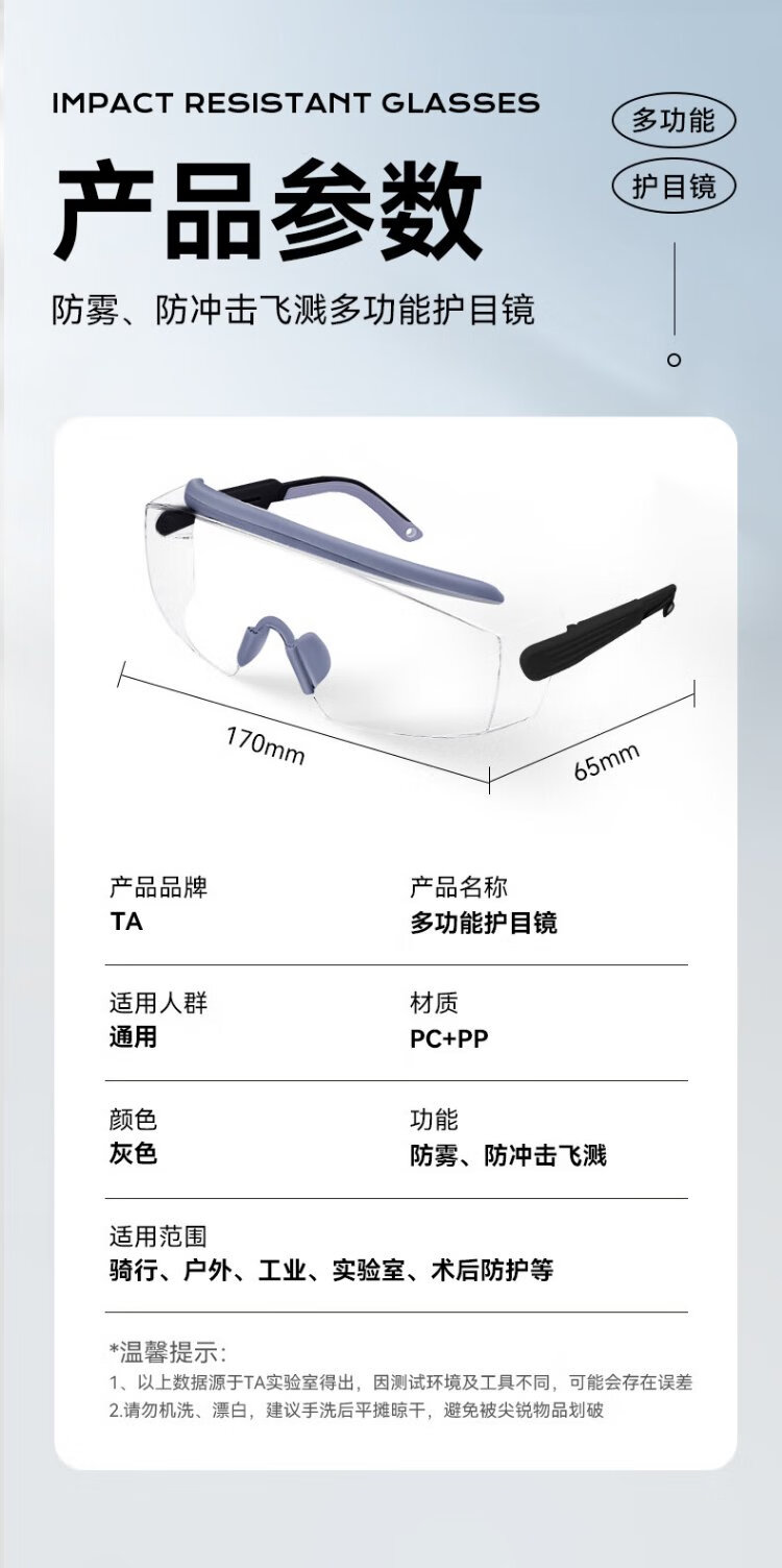 TA goggles are windproof, fog-proof, liquid-cutting, polishing, splash-proof, pollen dust-proof, cycling and mountaineering, can be worn over myopia glasses, impact-resistant and scratch-resistant, gray
