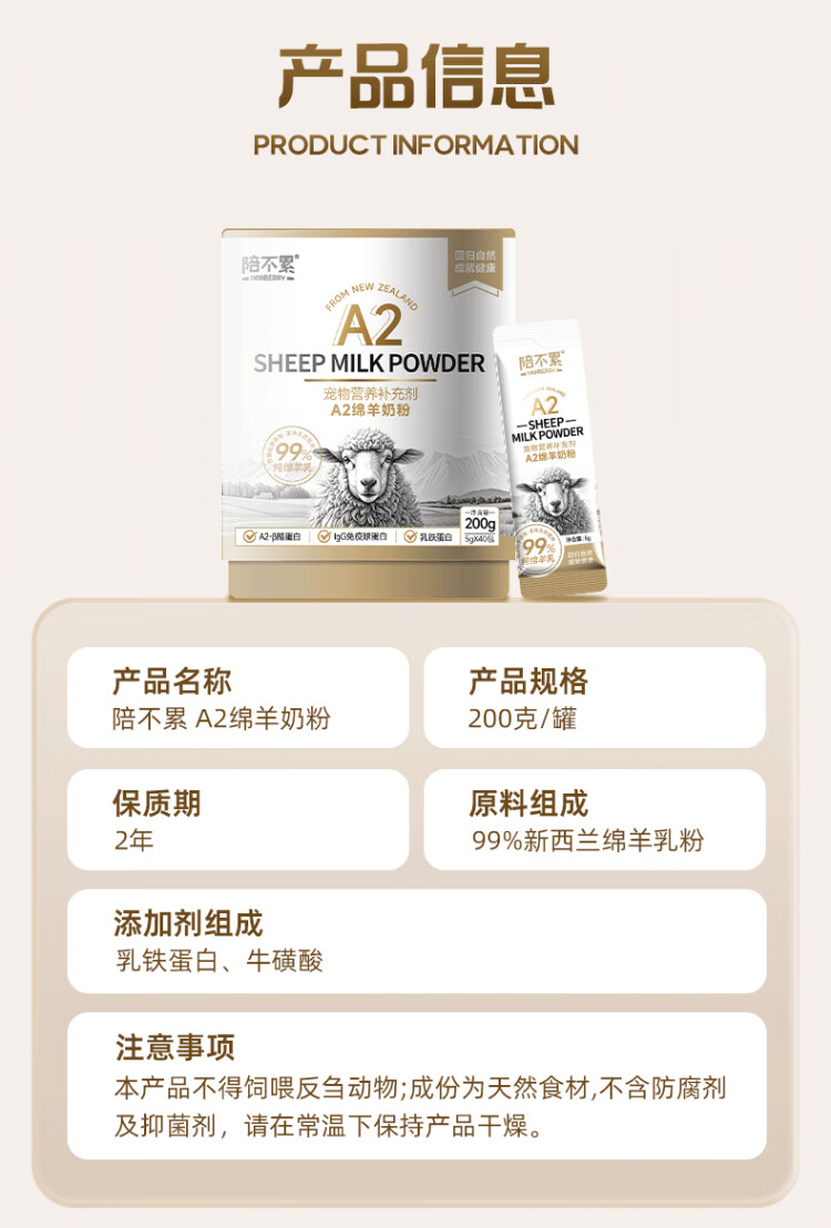 BeiBuLei BeiBuLei 99% pure sheep milk milk powder with 0 lactose and added lactoferrin A2 dog and cat nutrition supplement breast milk