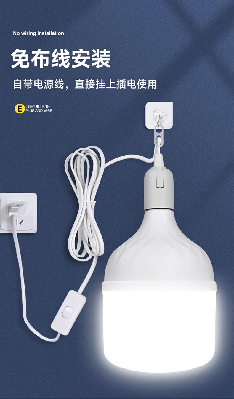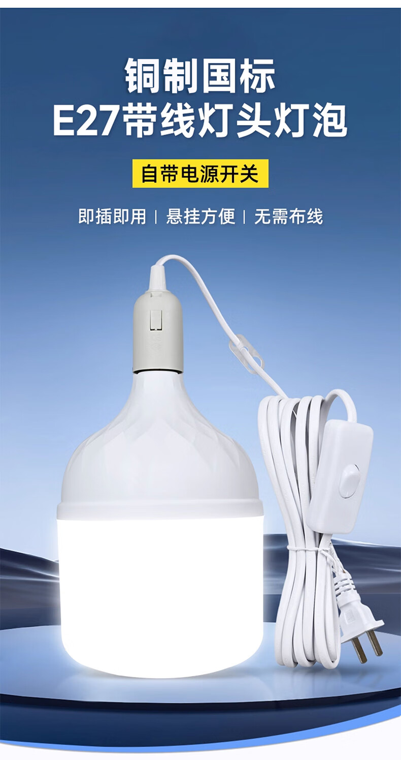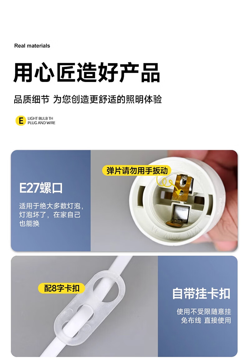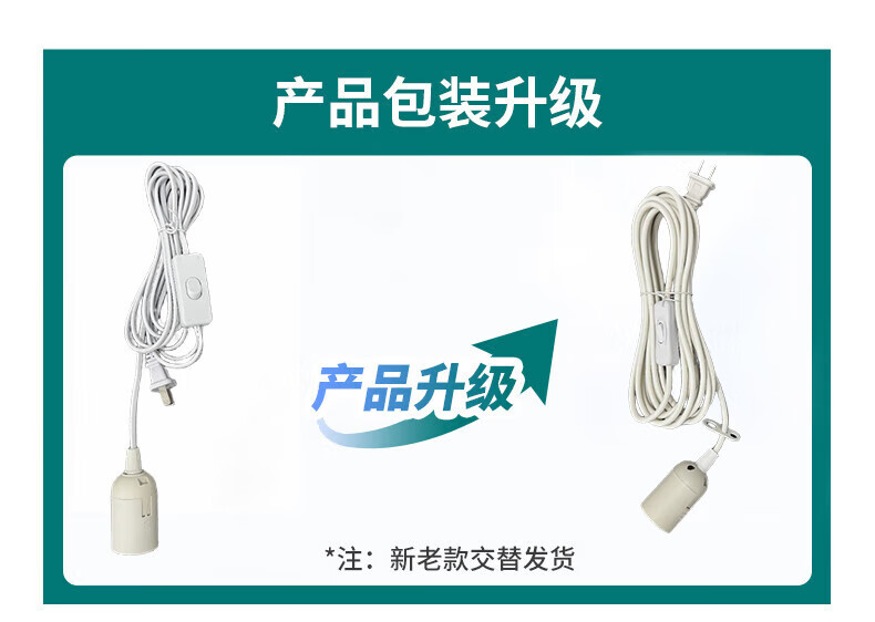 Biuyum plug socket chandelier switch extension cord hanging LED energy-saving lamp with cord plug integrated lamp E27 screw socket two plugs 5 meters light cord + 1 40W bulb