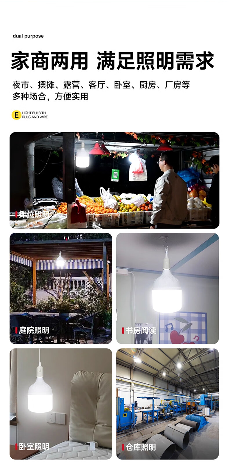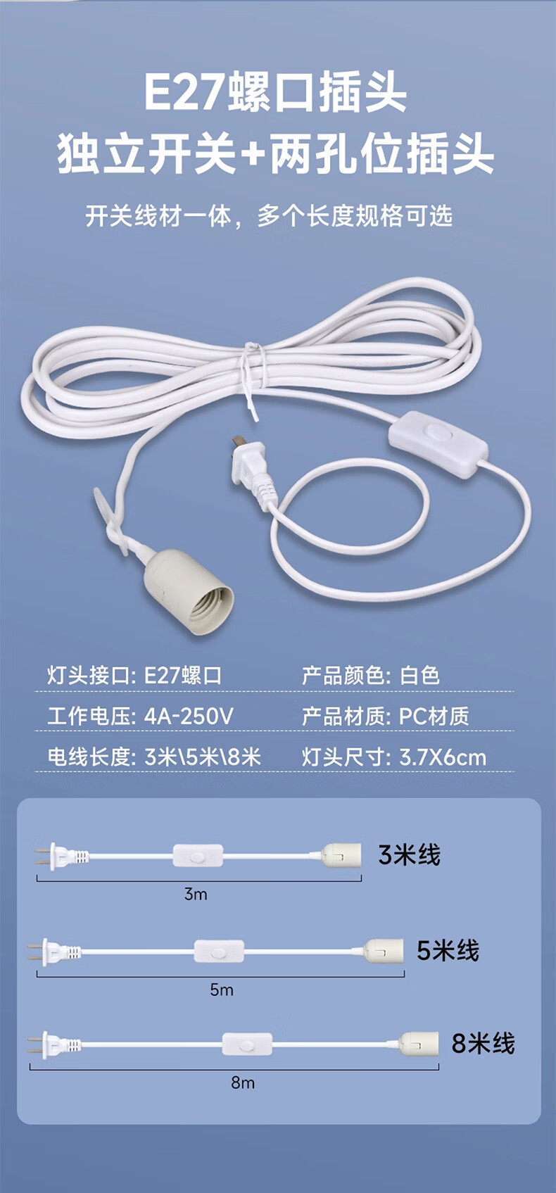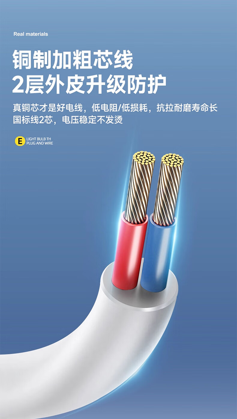Biuyum plug socket chandelier switch extension cord hanging LED energy-saving lamp with cord plug integrated lamp E27 screw socket two plugs 5 meters light cord + 1 40W bulb