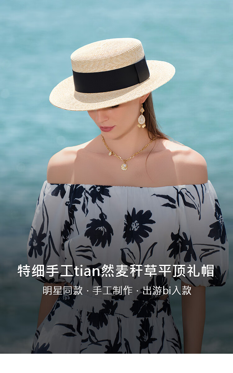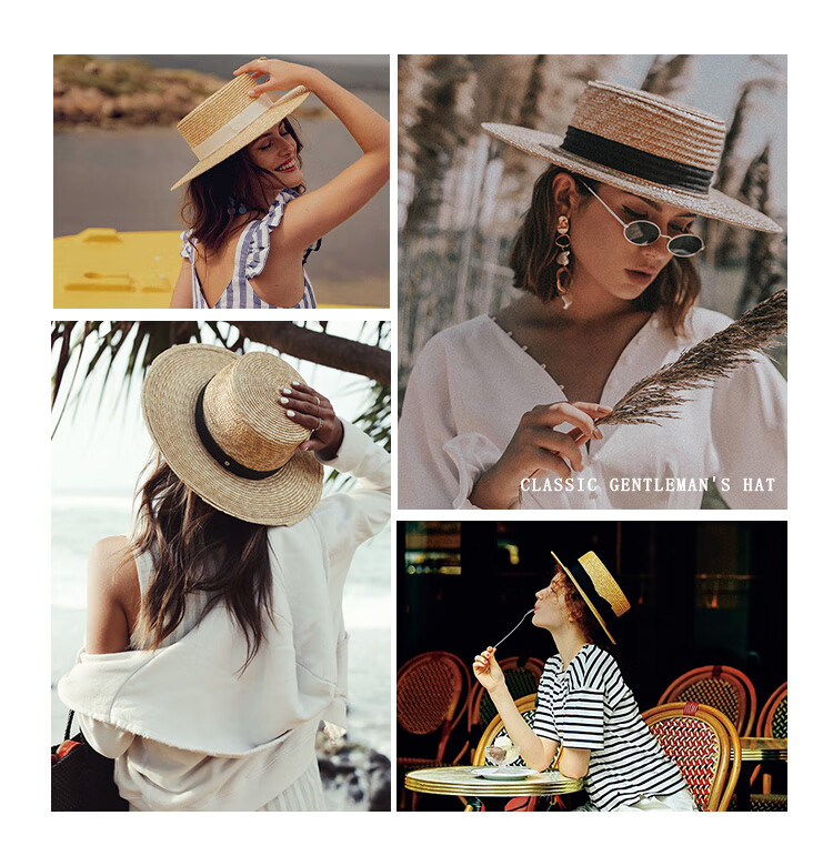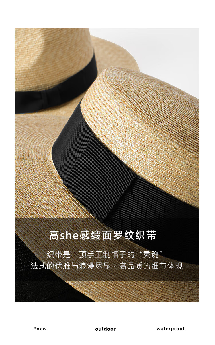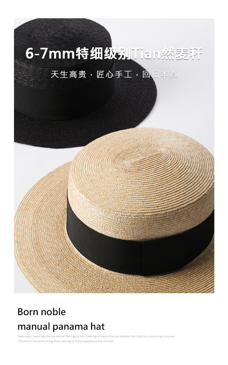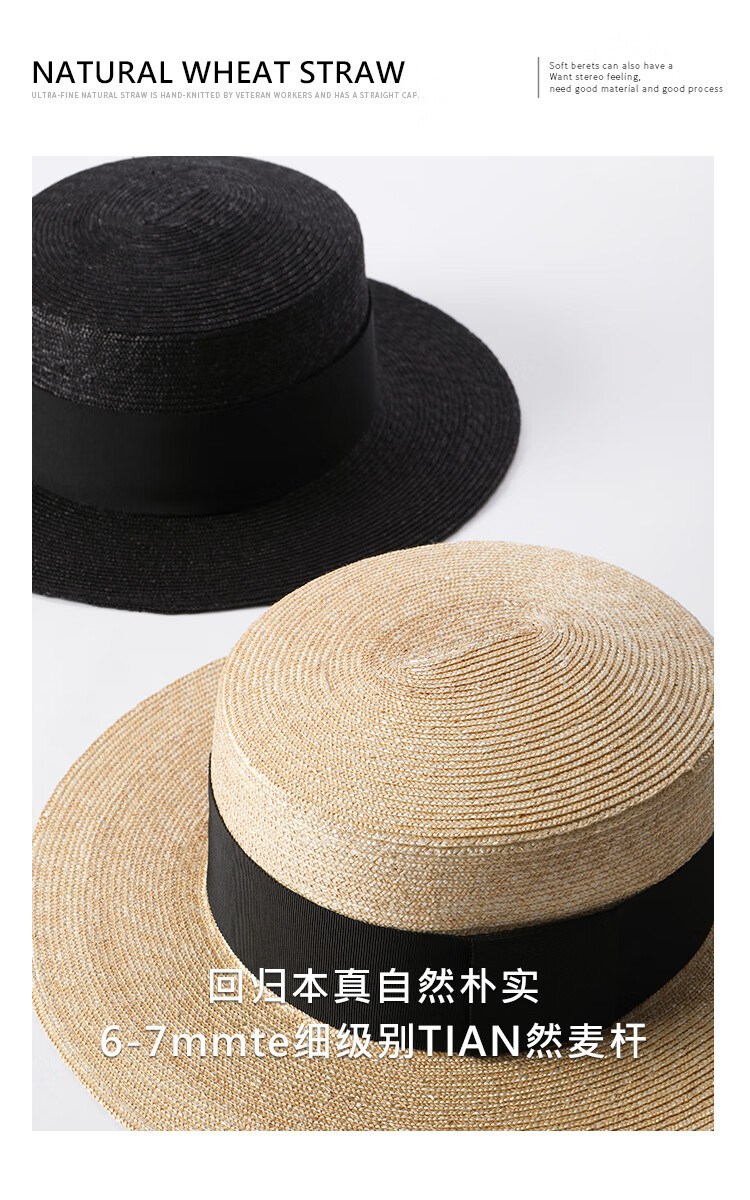 Mr DUCK star's same style, light luxury, extra fine hand-woven straw hat for women, French style flat top hat, multi-size hat