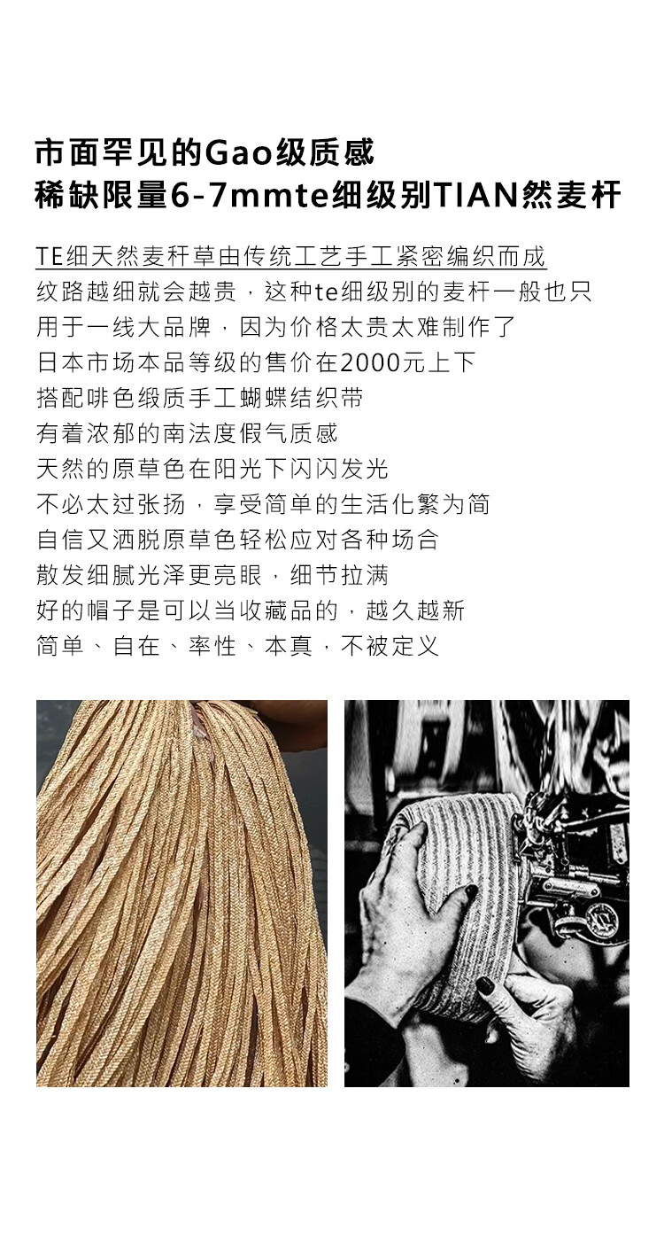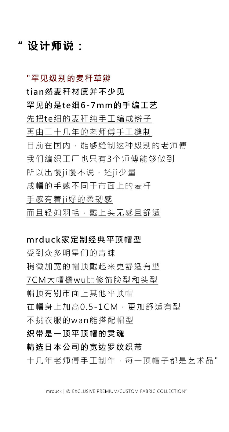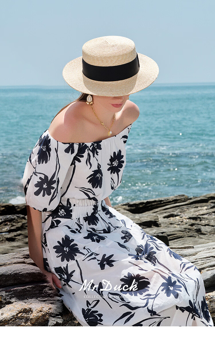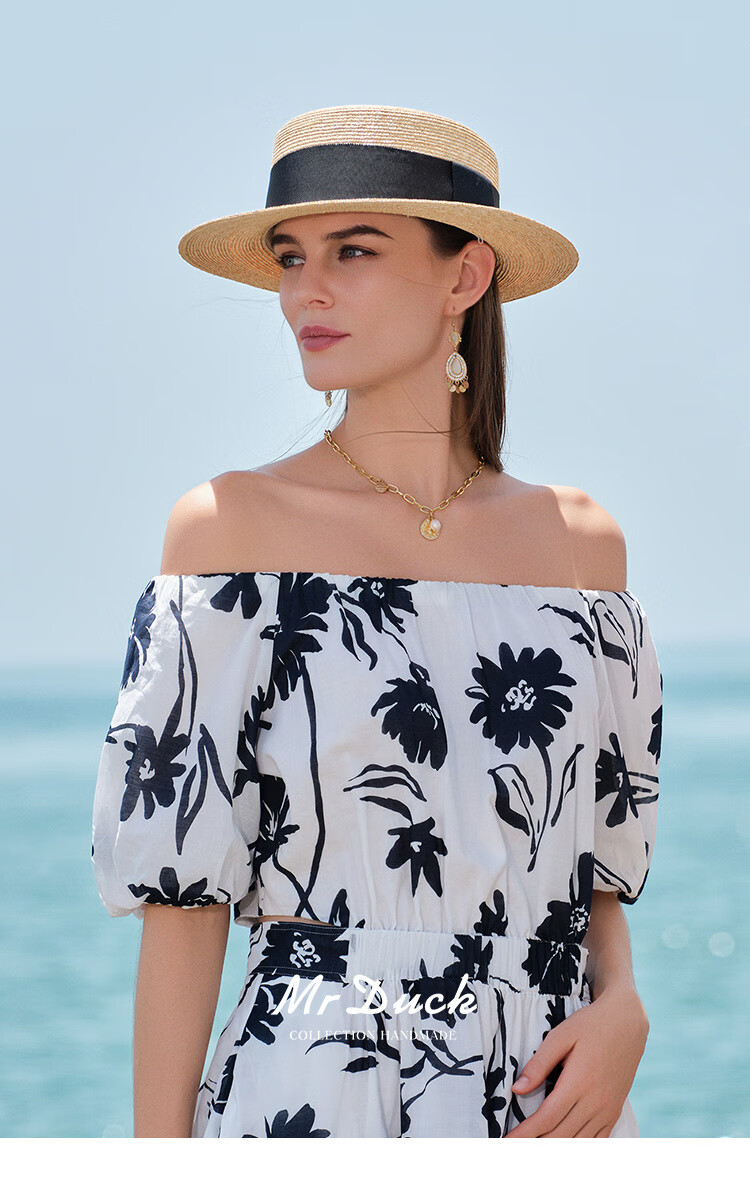 Mr DUCK star's same style, light luxury, extra fine hand-woven straw hat for women, French style flat top hat, multi-size hat