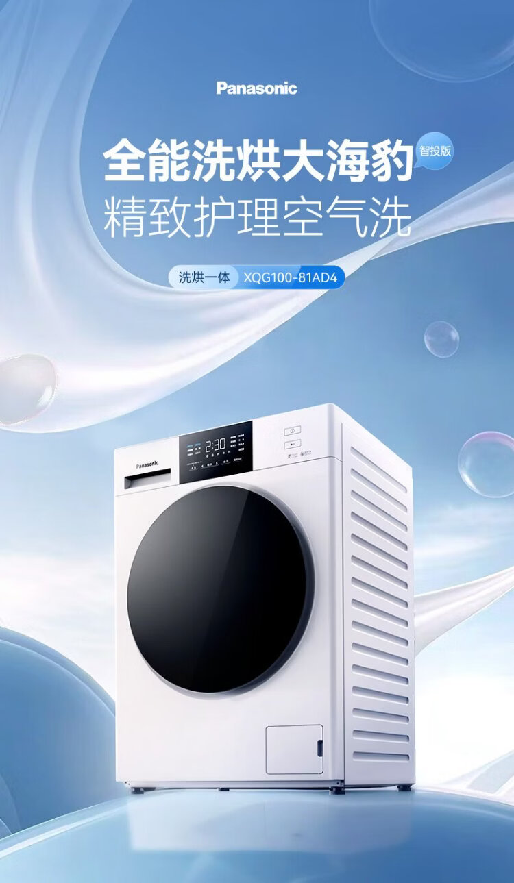 Panasonic Big Seal smart investment version drum washing and drying integrated 10KG fully automatic washing machine smart investment ultra-thin drum washing machine XQG100-81AD4