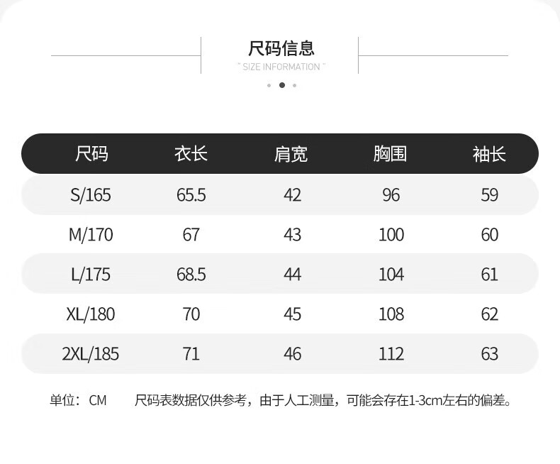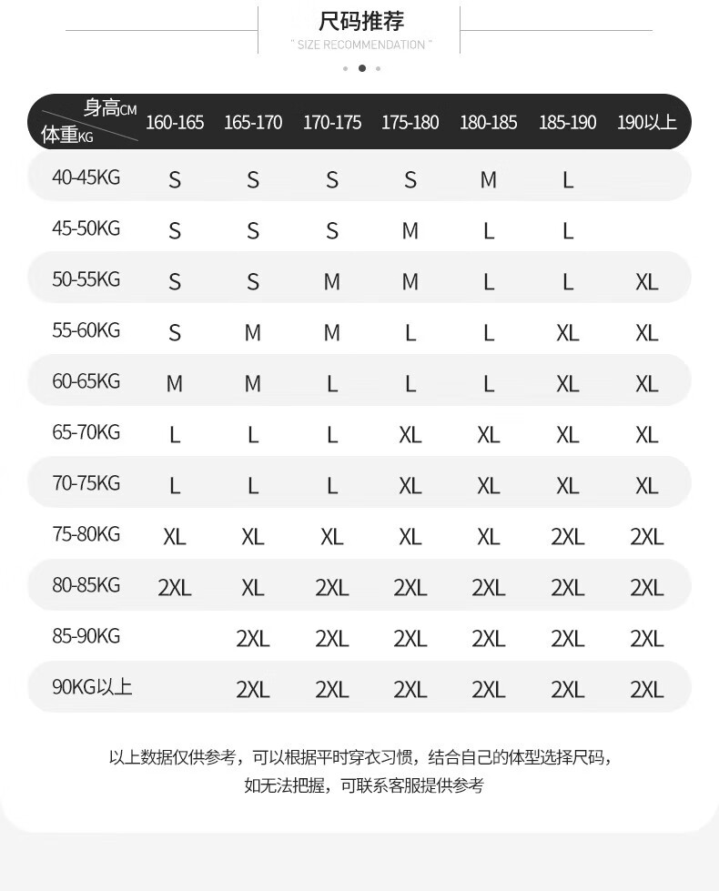 China (cm) 165 / 88-90 170 / 96-98 175 / 108-110 180 / 118-122 185 / 126-130