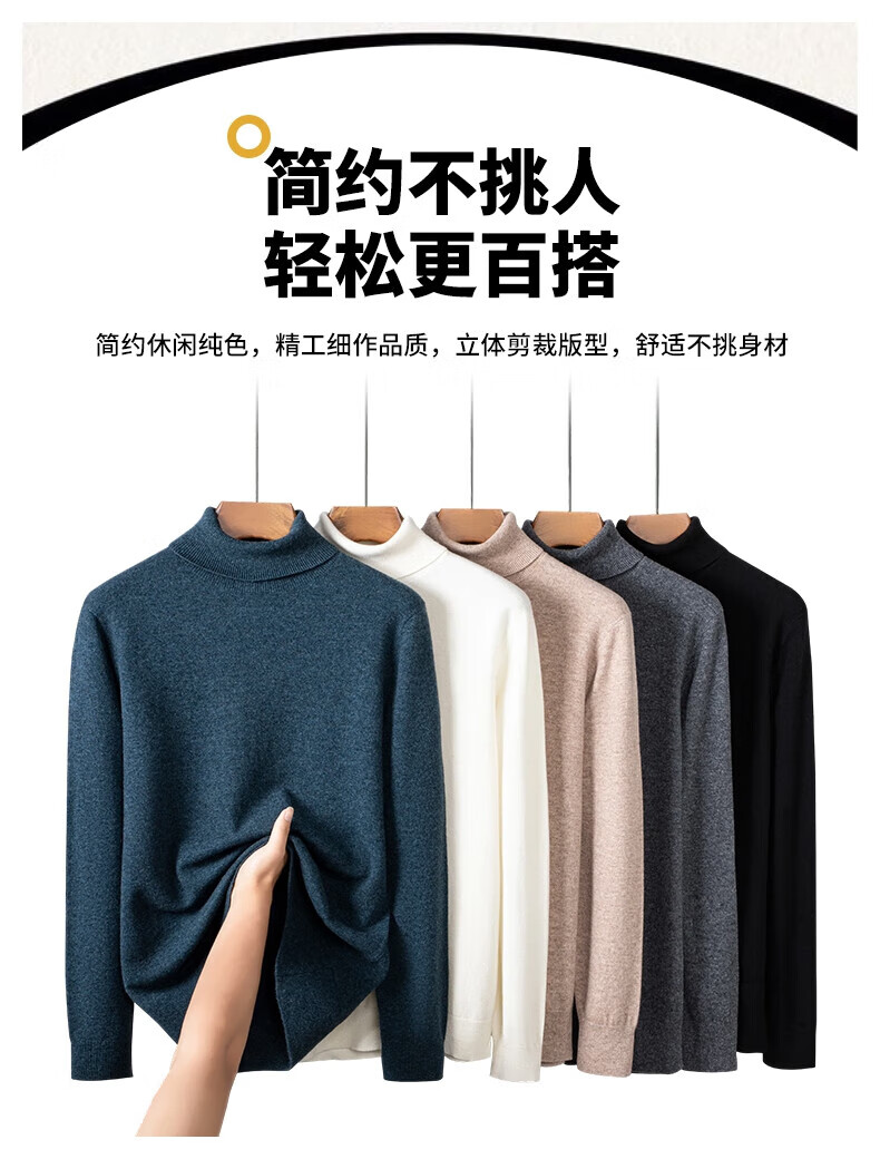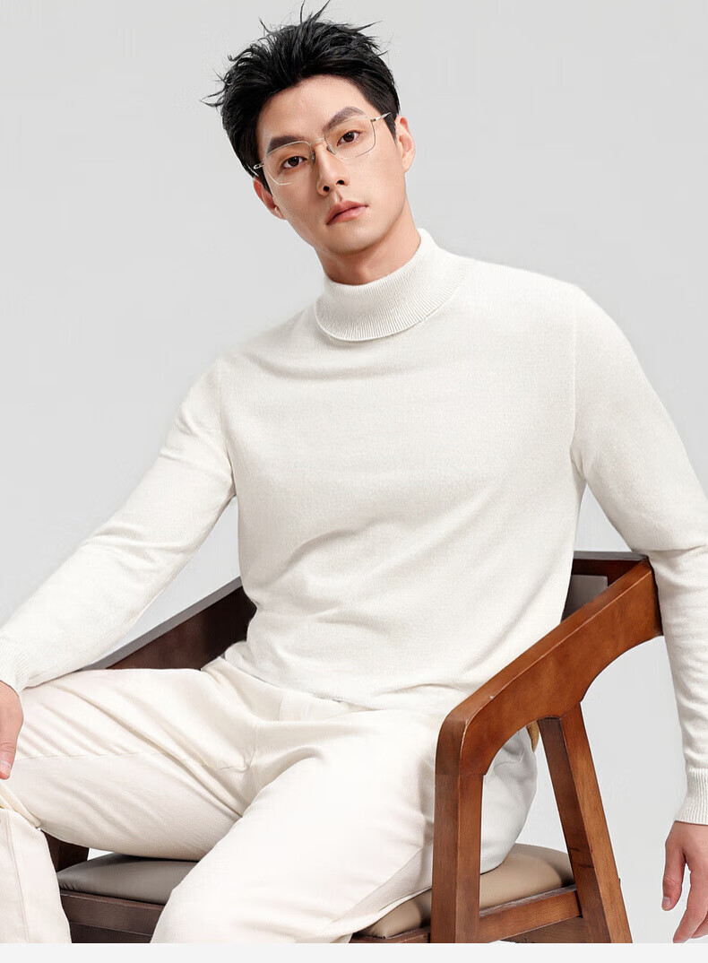 SHANSHAN cashmere pure wool sweater for men 2025 winter thick warm turtleneck long-sleeved knitted inner sweater