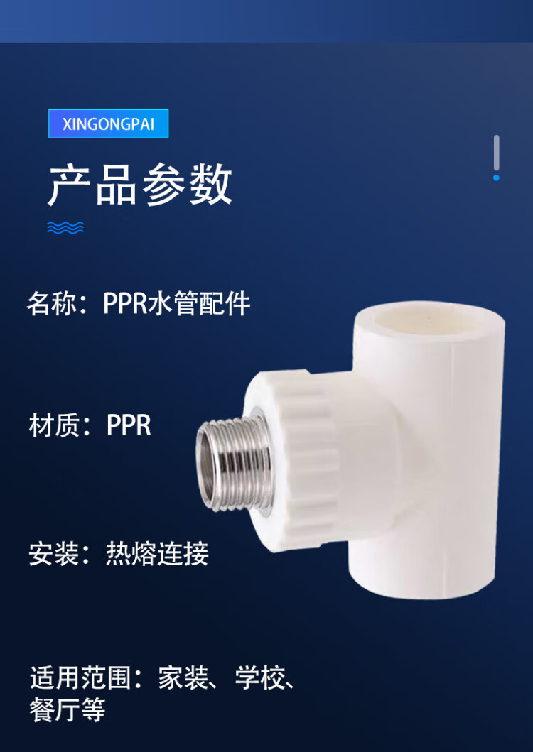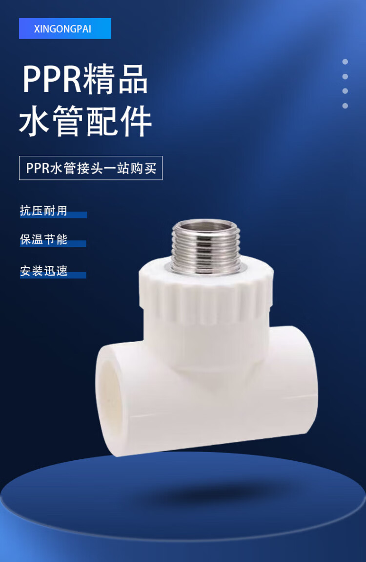 Xingongpai PPR external wire tee water supply pipe joint hot melt water pipe accessories T20x1/2M (2 pieces)