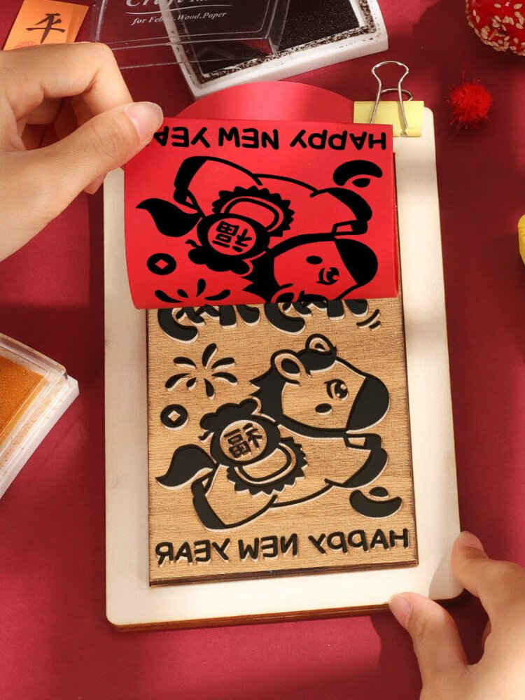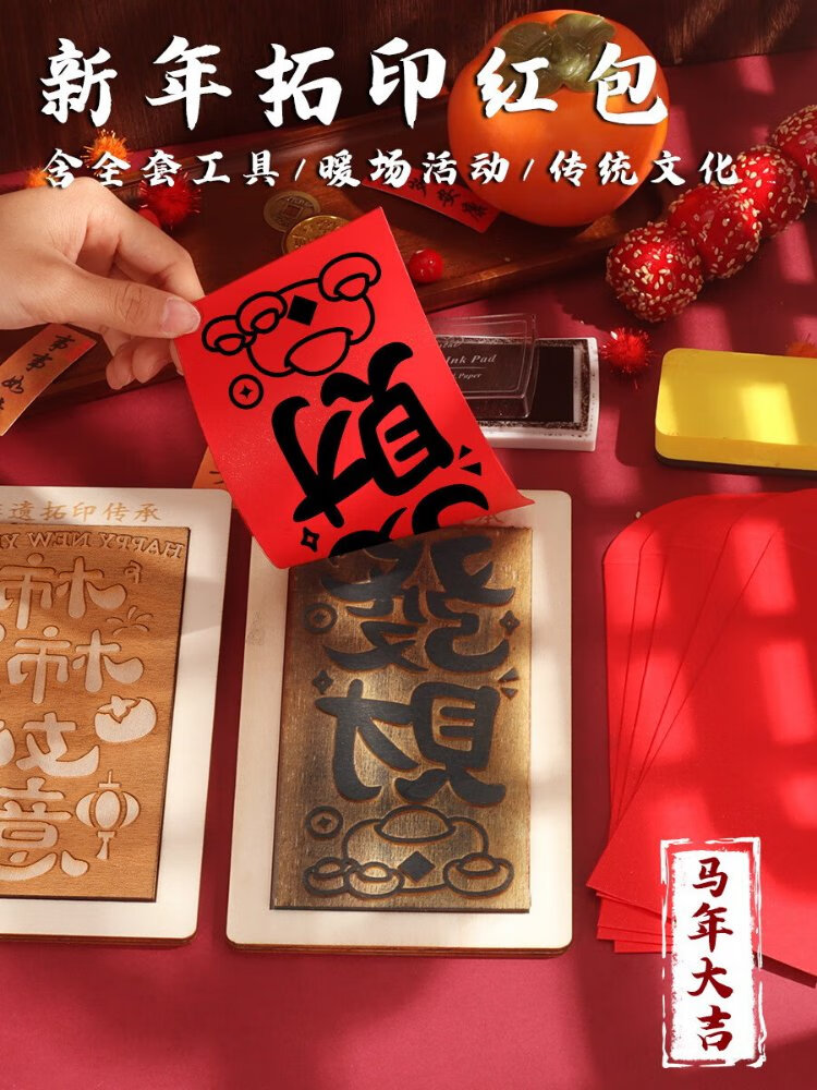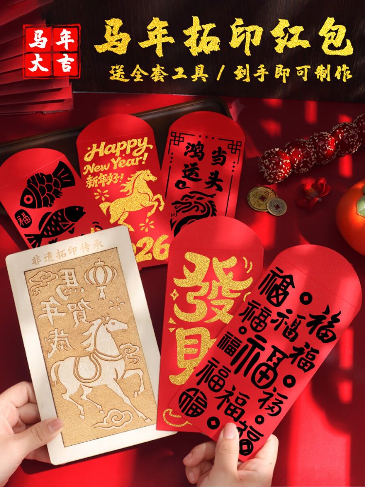 Jiamo intangible cultural heritage handmade diy red envelope rubbing template print New Year's Day blessing printing tools and materials New Year peace and joy Year of the Horse rubbing red envelope