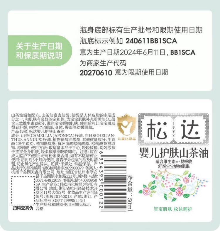 Songda Baby Skin Care Camellia Oil 50ml Scratch Code Final Clearance