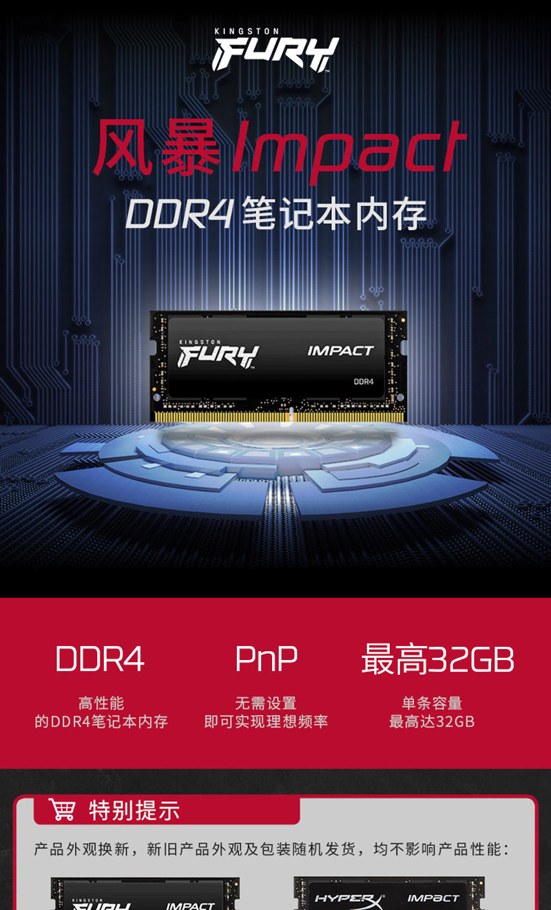 Kingston (Kingston) KVR Storm FURY Impact DDR4 PC4 Hacker God Bar fourth generation notebook all-in-one computer memory upgrade DIY game e-sports dual channel DDR4 2666 notebook memory 16GB 1 single