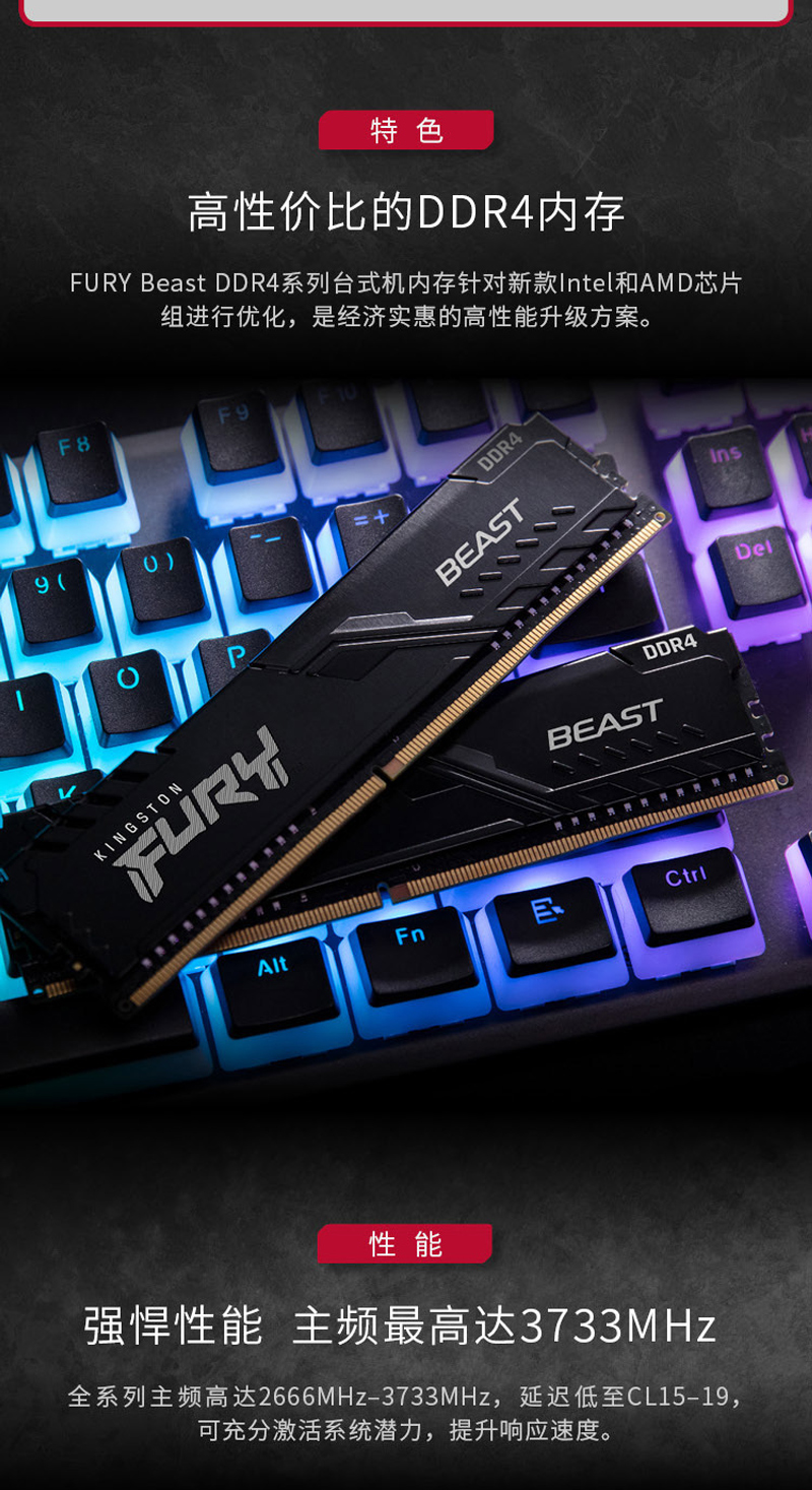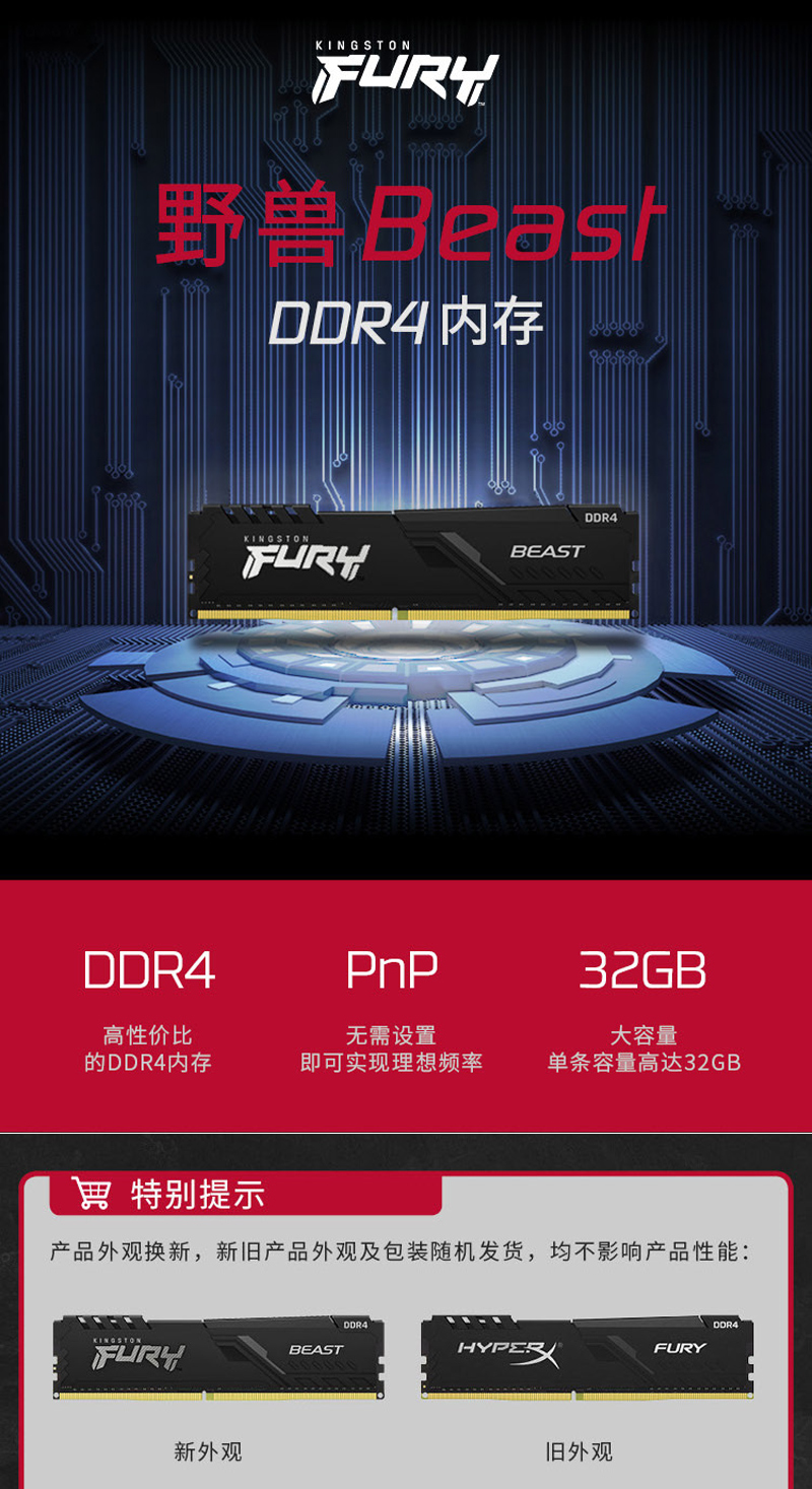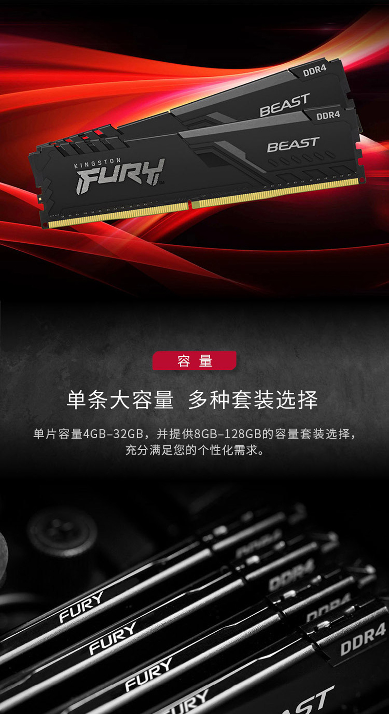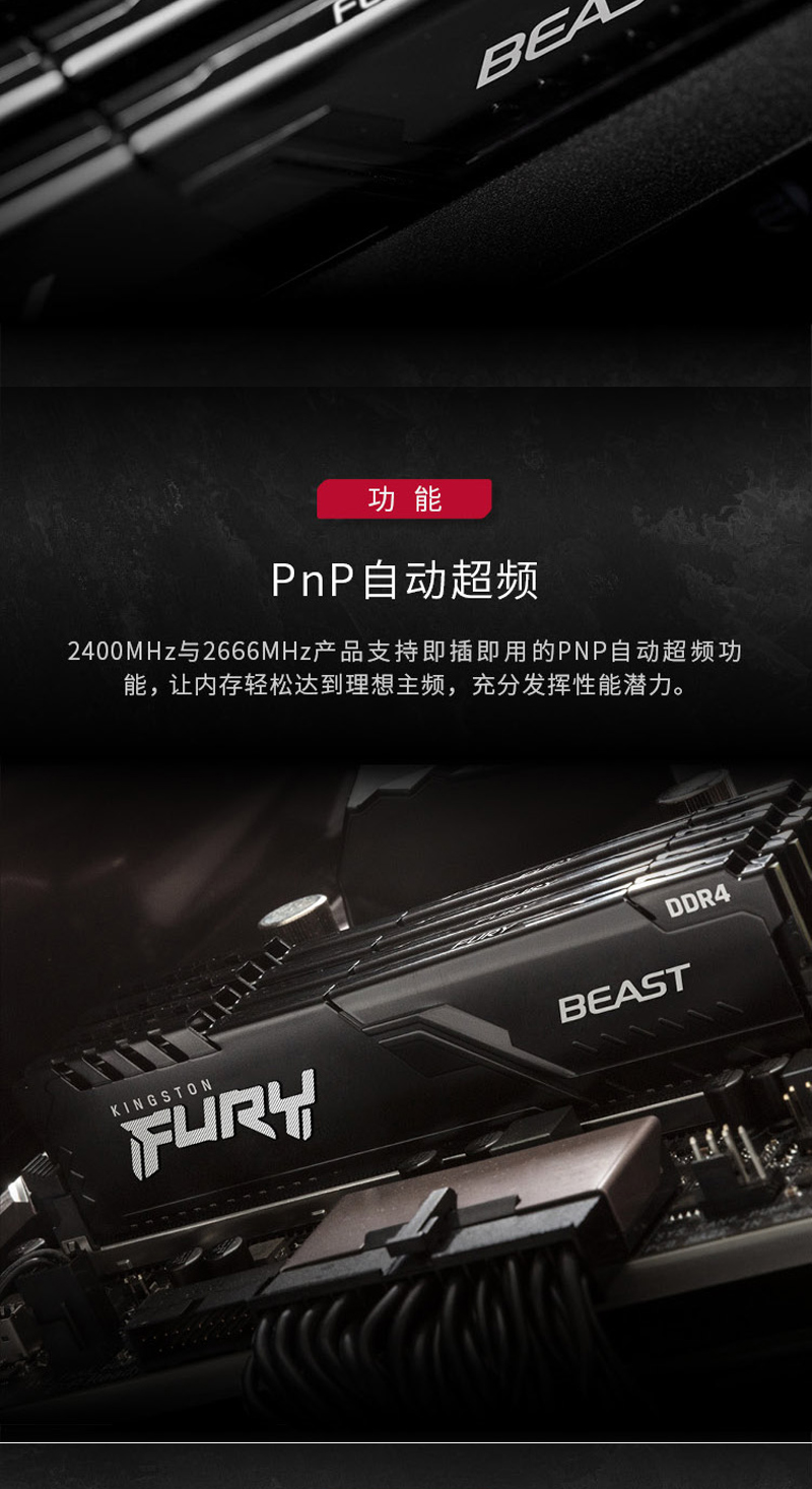 Kingston HyperX FURY Beast DDR4 PC4 UDIMM fourth generation desktop computer memory module upgrade DIY game e-sports dual channel DDR4 2400 desktop HyperX FURY Thunderbolt 16GB 2 modules (total capacity 32GB)