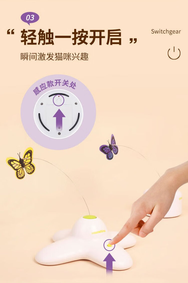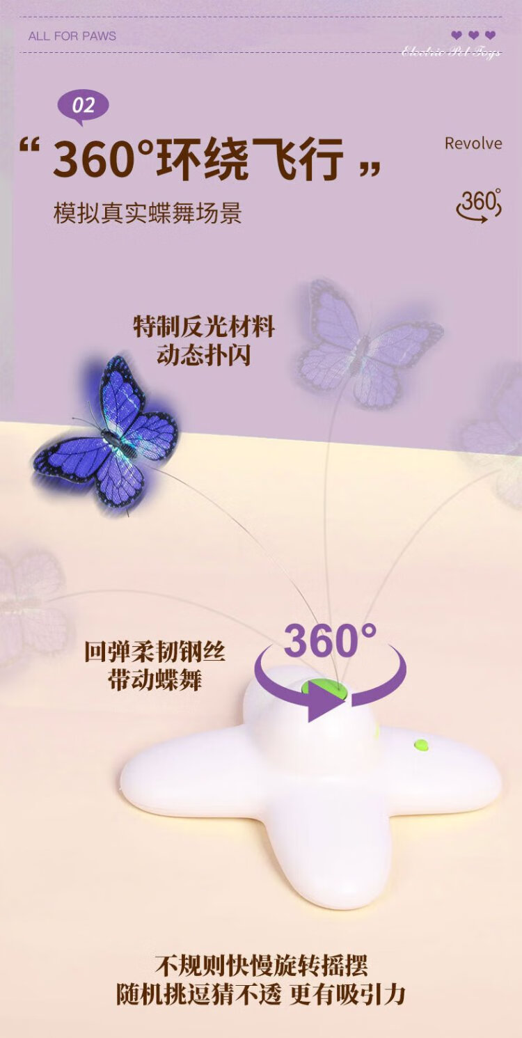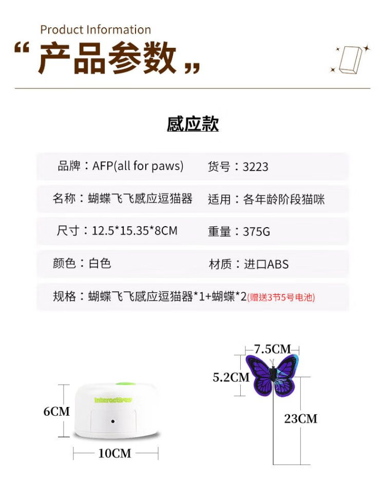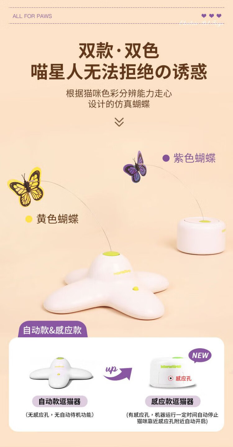 All for paws cat toy electric rotating butterfly flying automatic induction cat funny stick smart toy cat butterfly replaceable induction butterfly flying (including 2 butterflies)