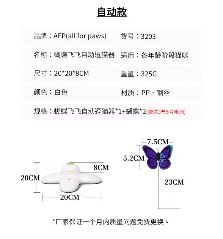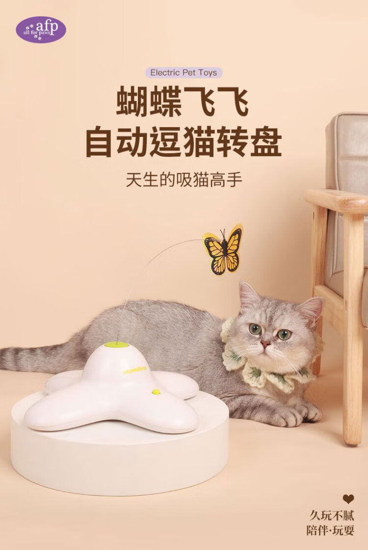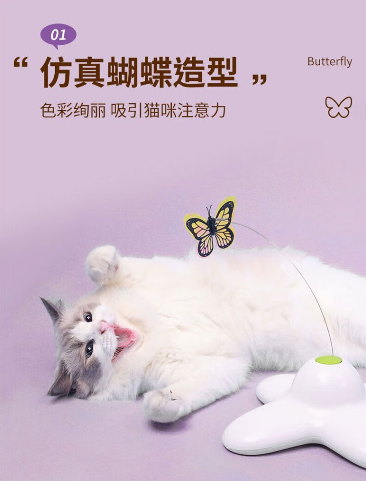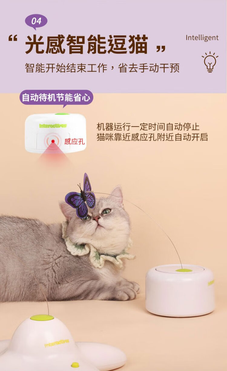 All for paws cat toy electric rotating butterfly flying automatic induction cat funny stick smart toy cat butterfly replaceable induction butterfly flying (including 2 butterflies)