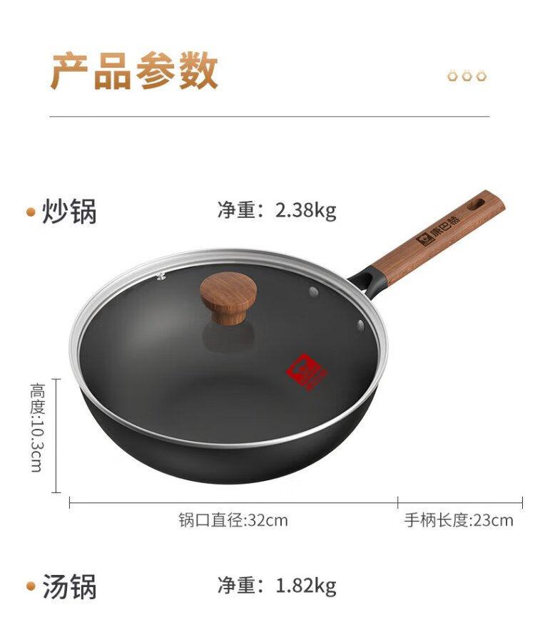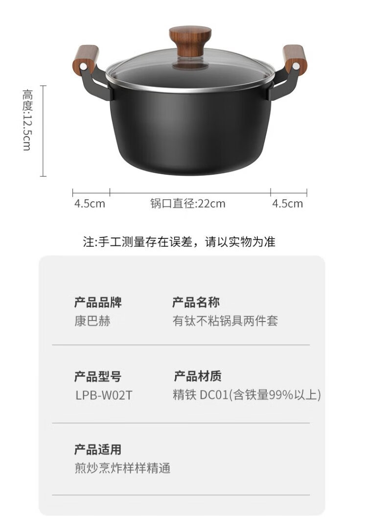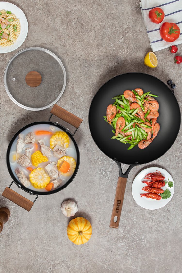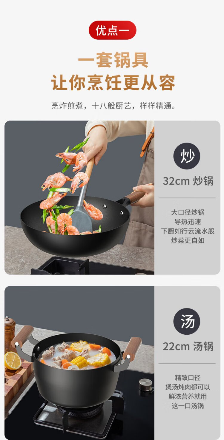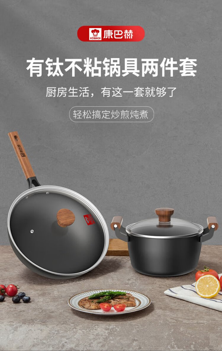 Kornbach wok pot set includes titanium non-stick wok and soup pot two-piece set (32cm wok + 22cm soup pot)