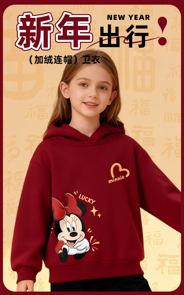 Disney (Disney) Children's Clothing Zodiac Year Children's Winter Clothing Set 2026 New Boys' New Year's Wear Girls' Red New Year's Velvet Sweatshirt