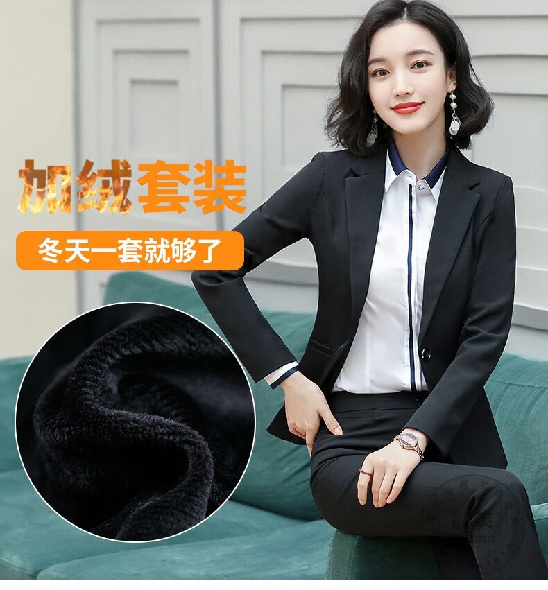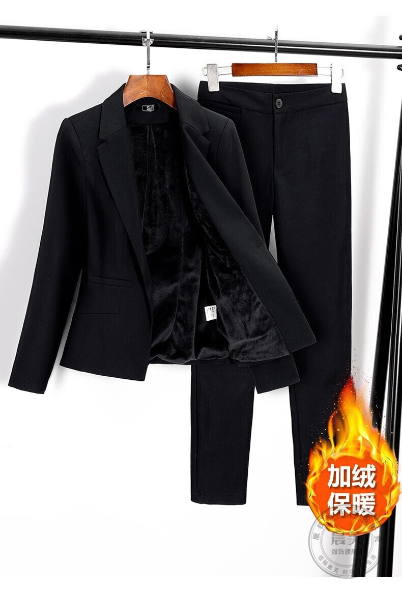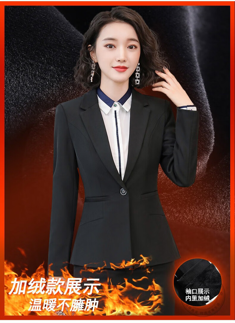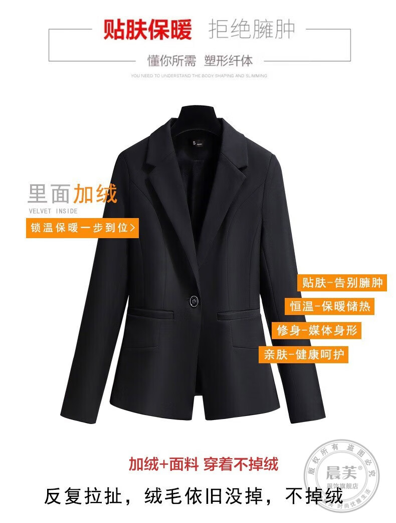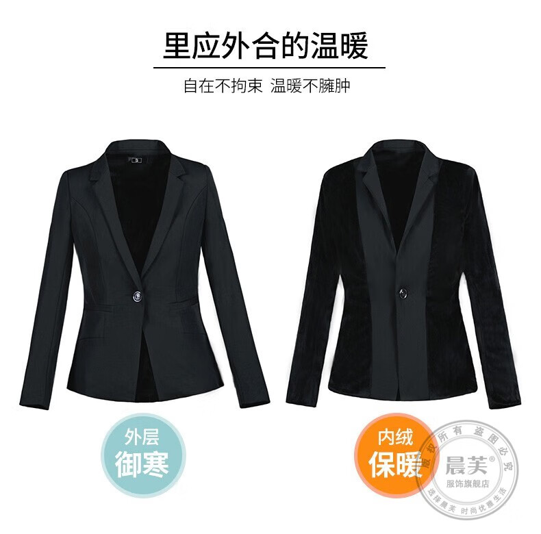 Chenfu thickened velvet blazer women's business professional formal suit commuting administrative workwear sales temperament work clothes single velvet black jacket XL recommended 110-120Jin Jin equals 0.5 kg
