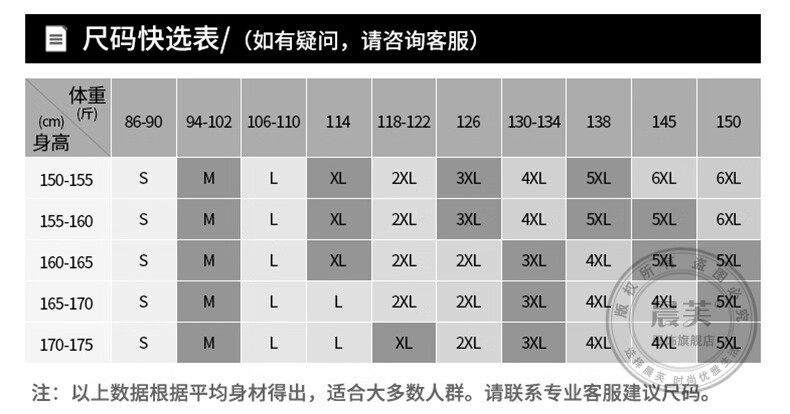 China (cm) 160-165/84-86 165-170 / 88-90 167-172 / 92-96 168-173 / 98-102 170-176 / 106-110