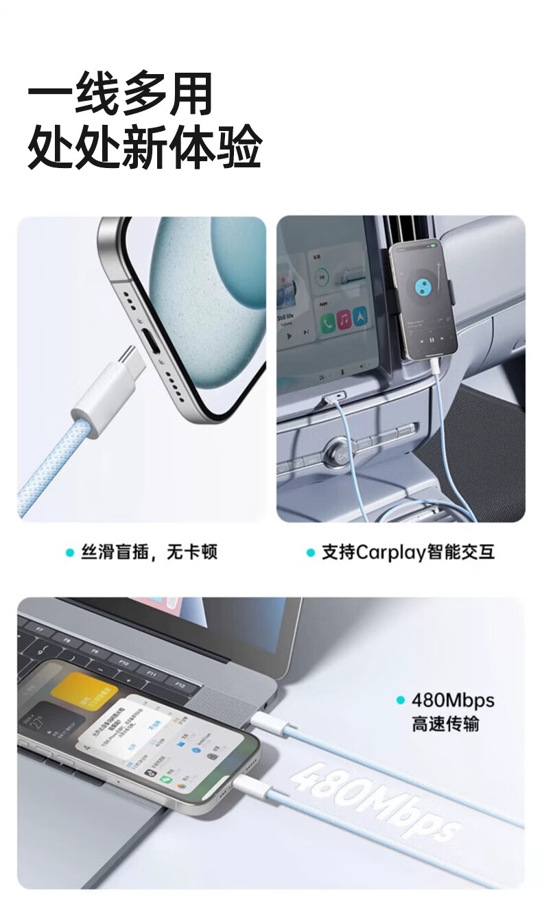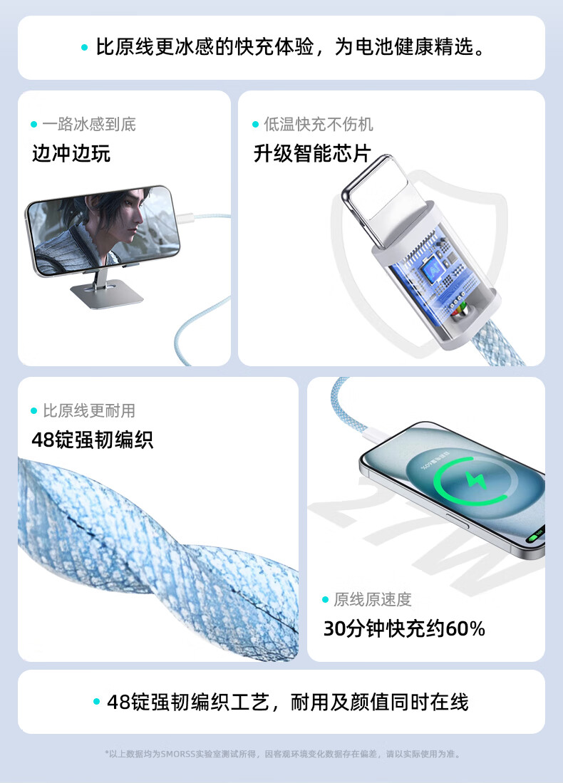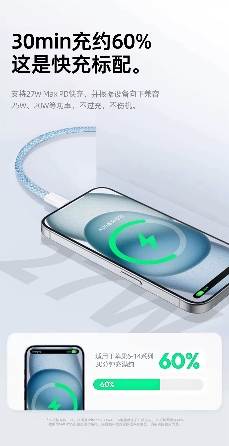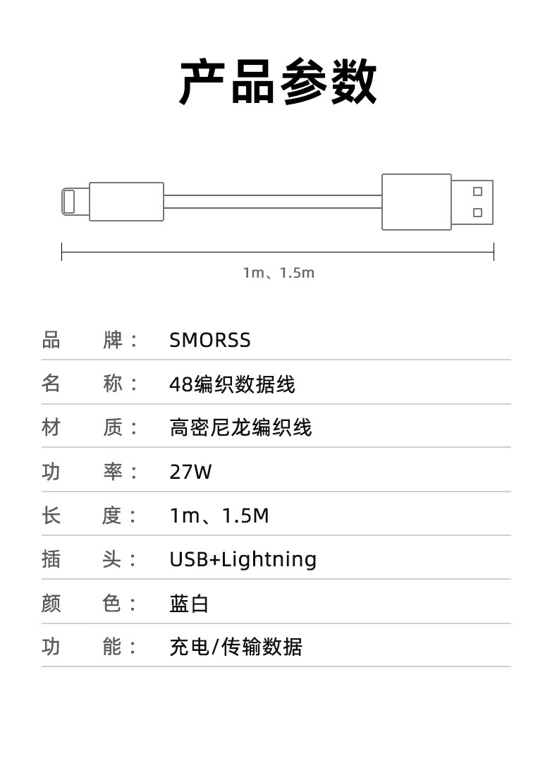 Smorss Apple charging cable fast charging data cable is suitable for iPhone14/13/12/XR/8 mobile phone charger cable USB car 1.5 meters