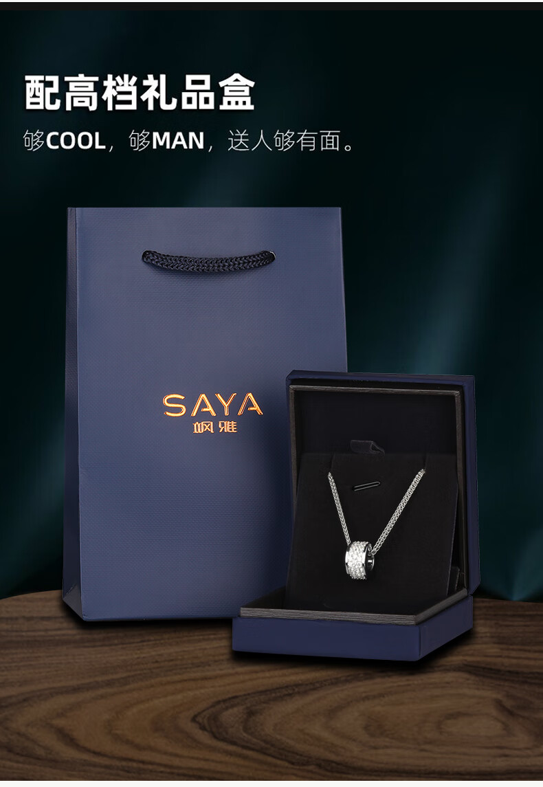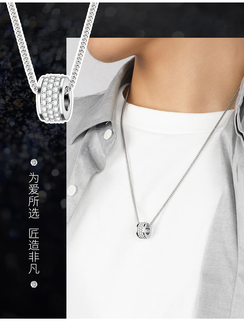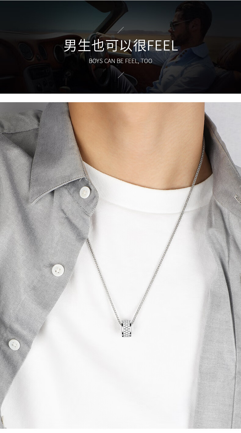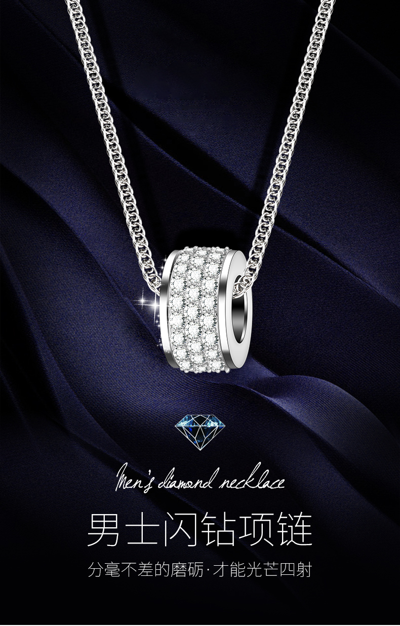 Sa Ya full diamond necklace men's niche rotating clavicle chain boys gift fashion jewelry hanging chain men's transfer bead pendant silver default necklace 55CM