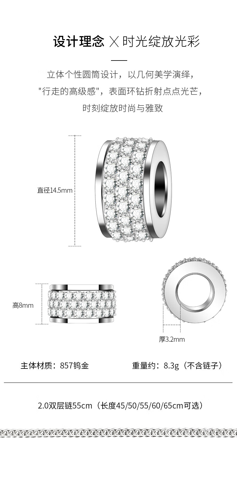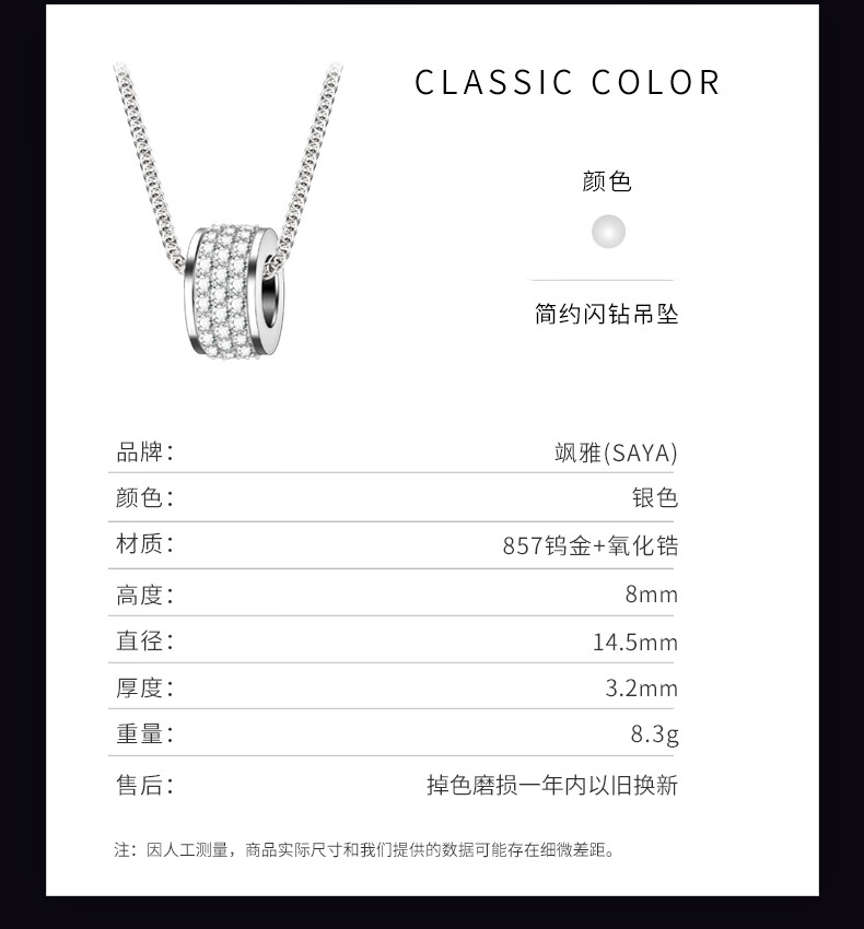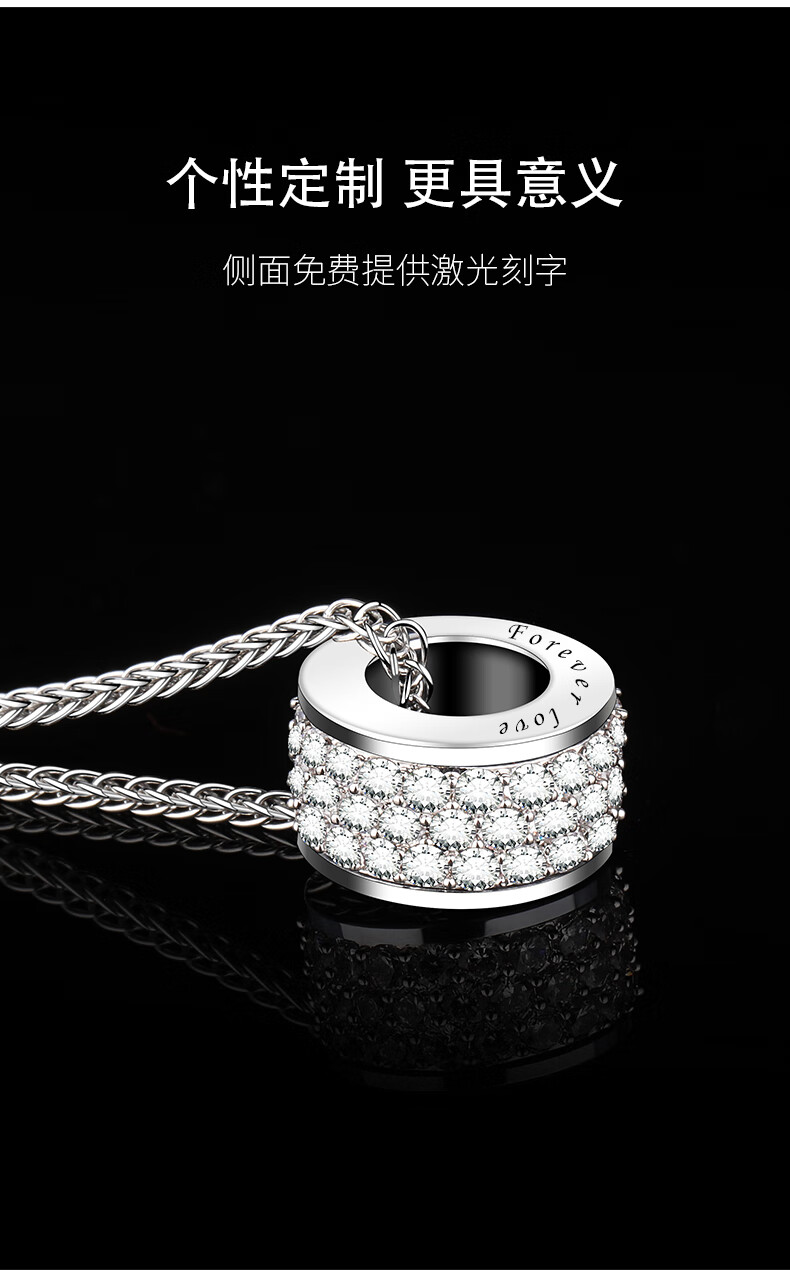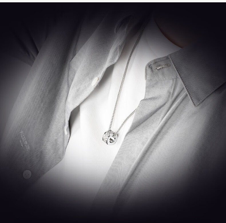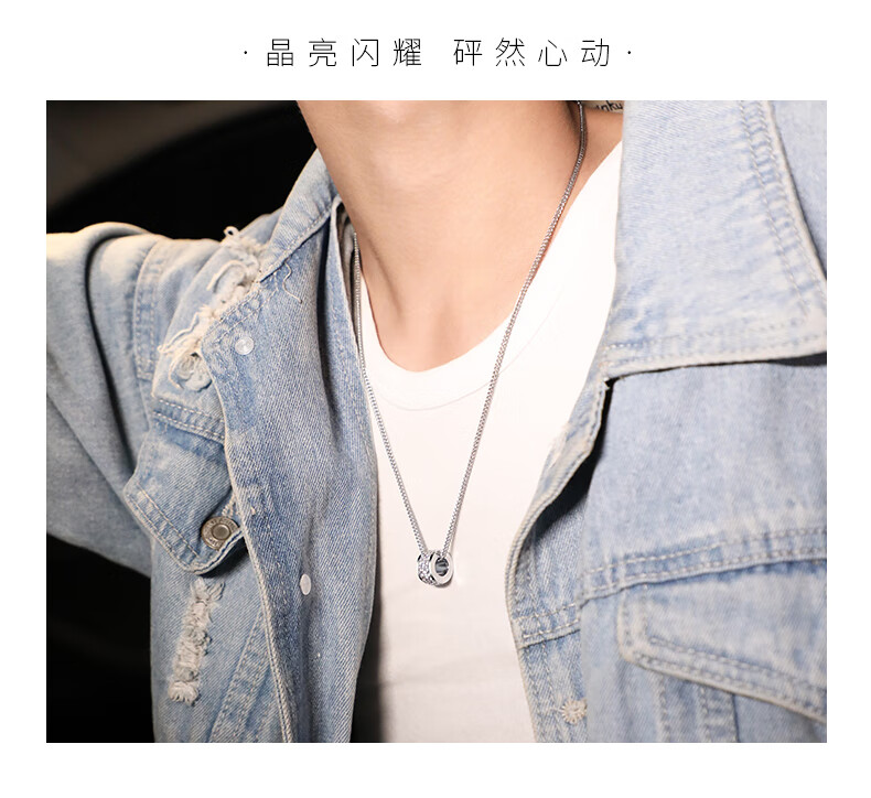 Sa Ya full diamond necklace men's niche rotating clavicle chain boys gift fashion jewelry hanging chain men's transfer bead pendant silver default necklace 55CM