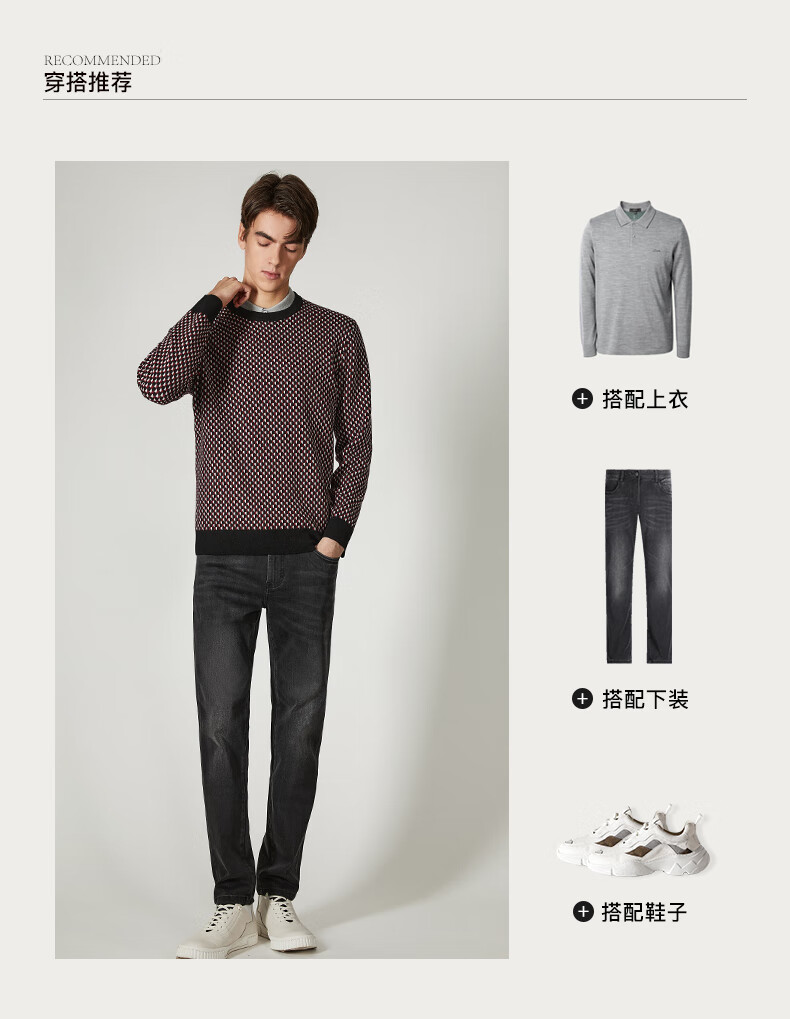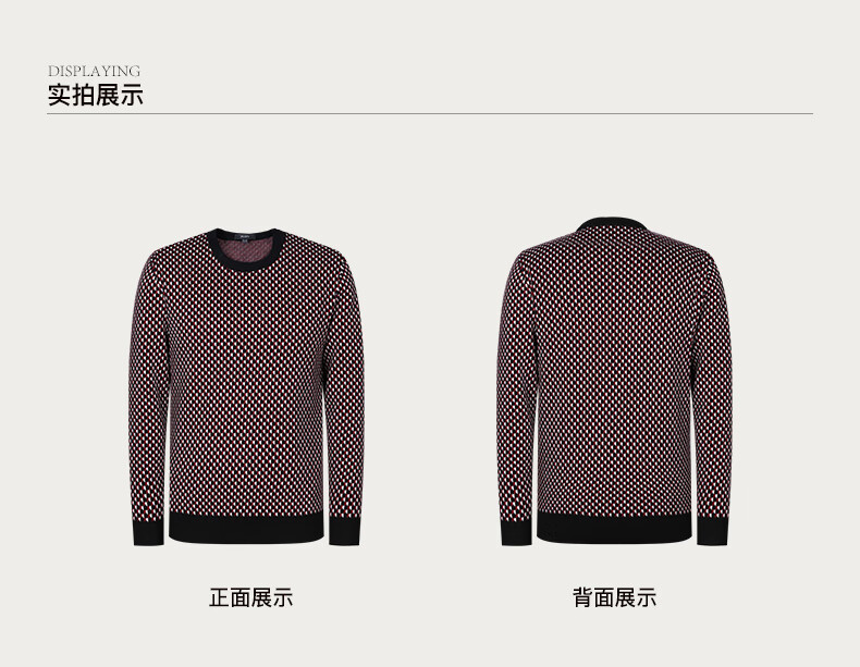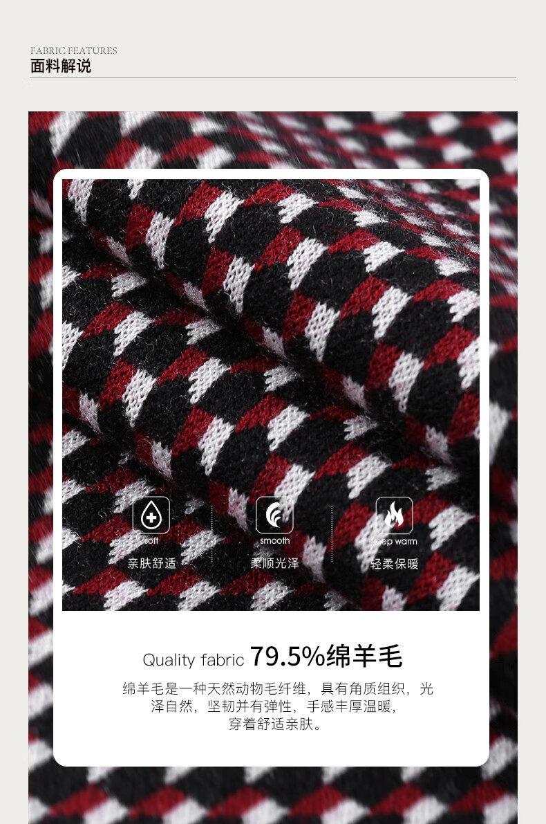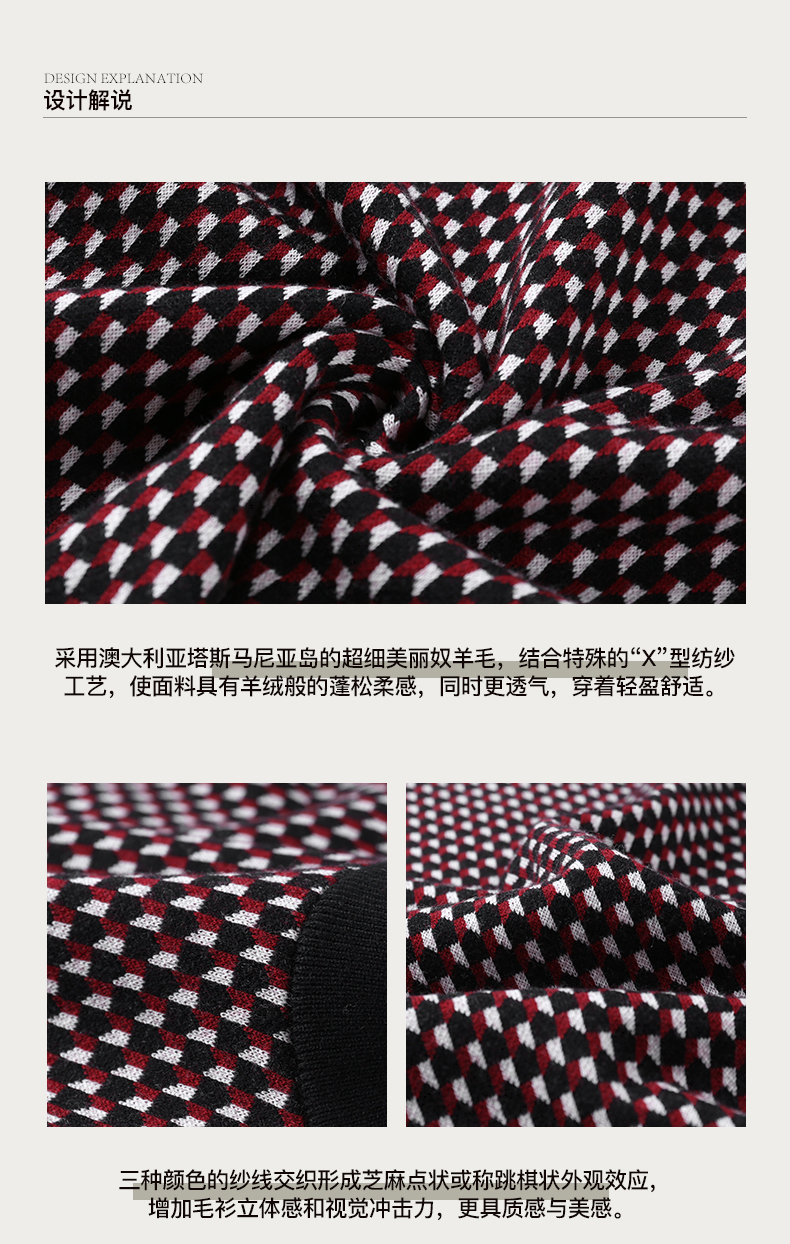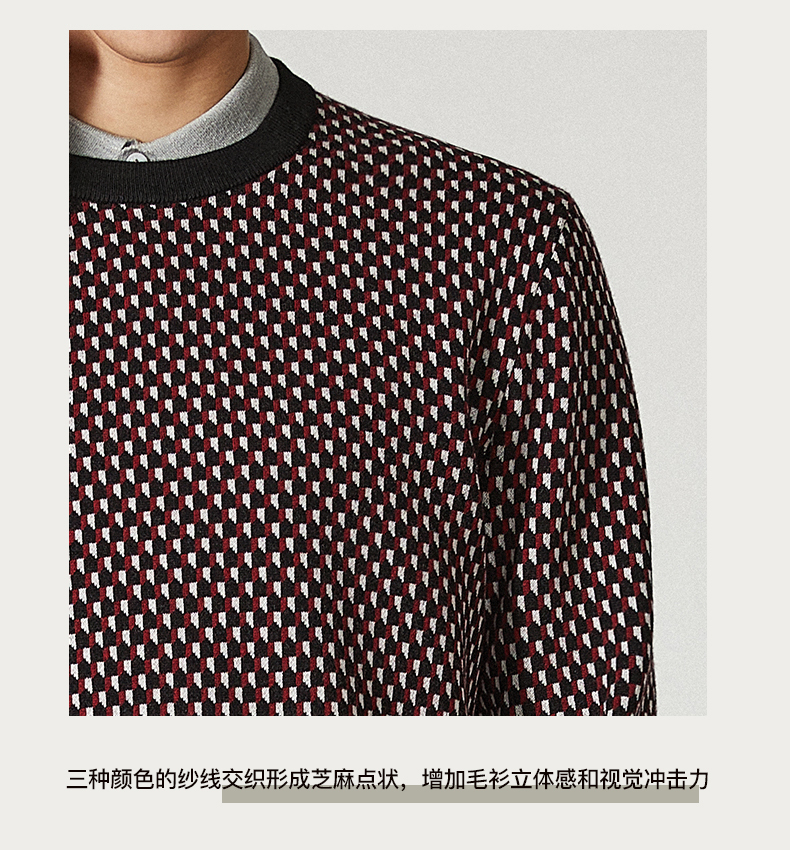 Brloote jacquard wool sweater for men, diamond plaid sheep wool warm sweater for winter, black and red 170/92A