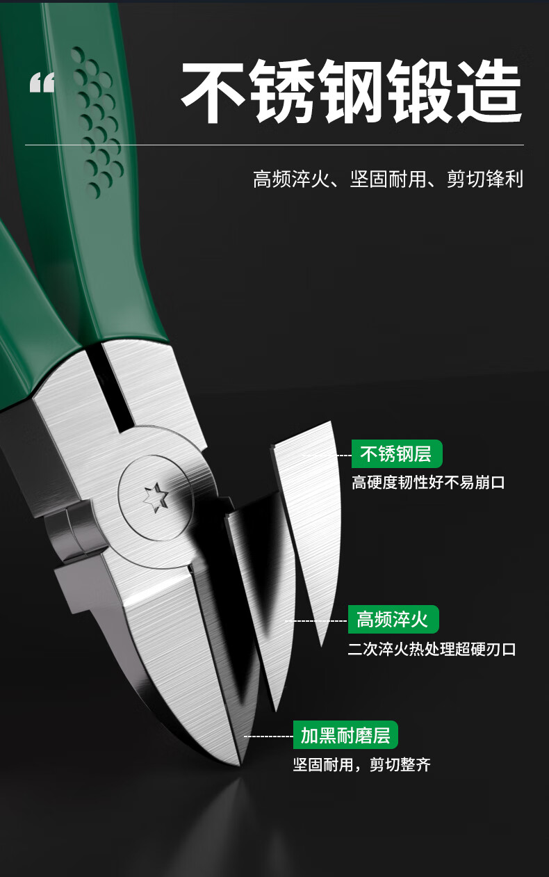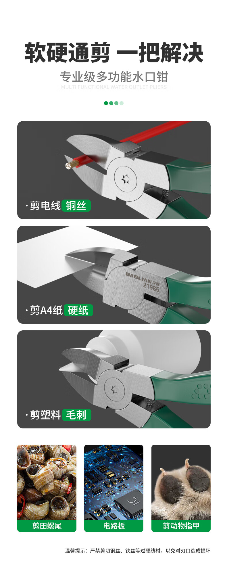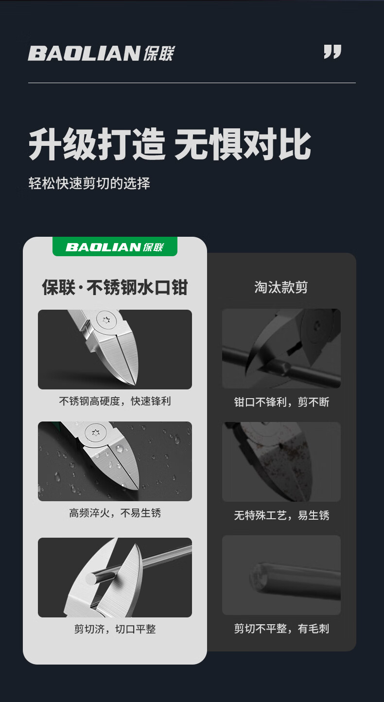 Baolian-Edelstahl-Wassermundzange, Elektrikerzange in Industriequalität, 6-Zoll-Multifunktions-Handzange, Schnellschneidezange, Offset-Zange mit hoher Härte