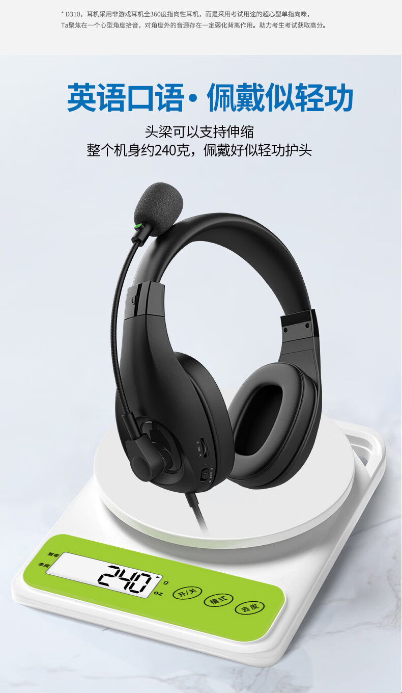 Electronic music D310 special earphones for English listening and speaking exams USB interface headset student teaching and testing human-computer dialogue recording junior high school entrance exam oral listening e listening and speaking headset with microphone