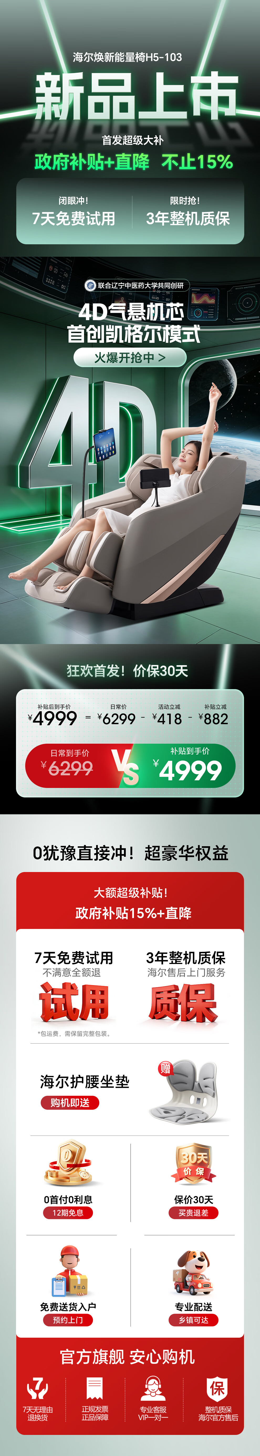 Haier Massage Chair Home Full Body Space Capsule Zero Gravity 2025 Top Ten Brands Electric Smart Massage Sofa Chair Rocking Chair Birthday Christmas Gift Practical H5-103HU1