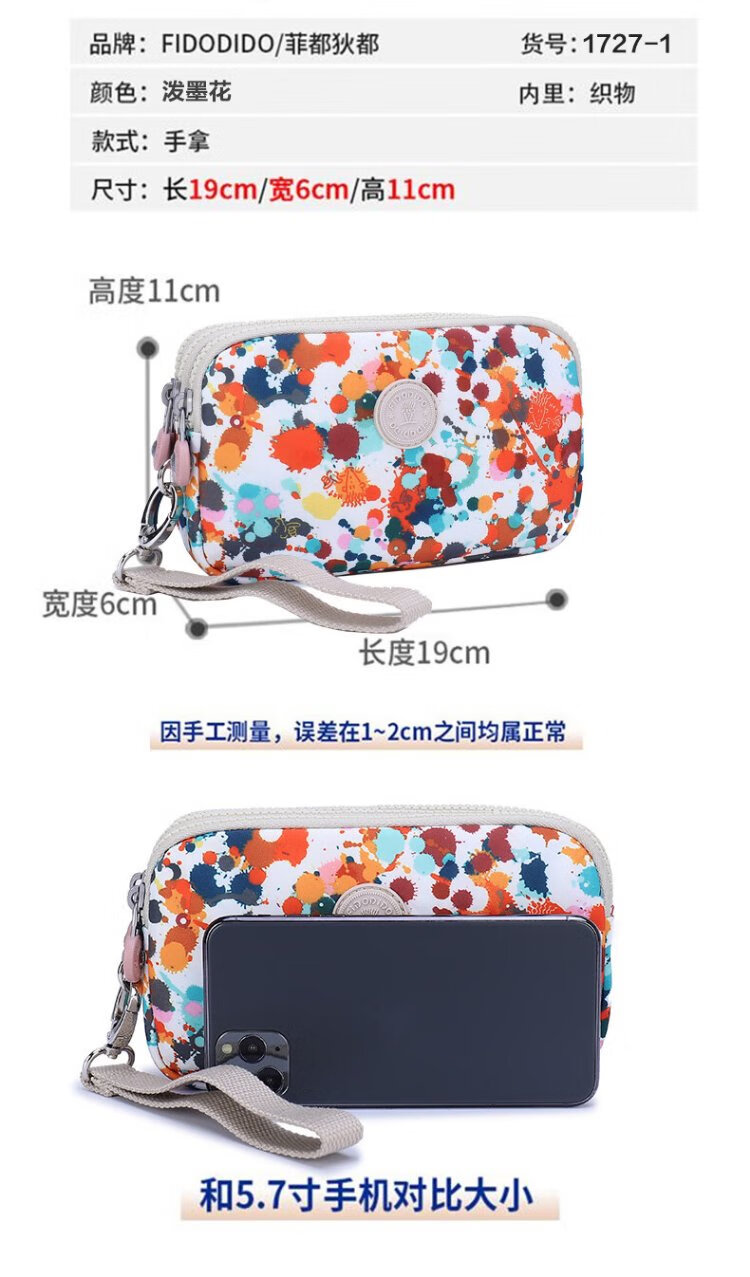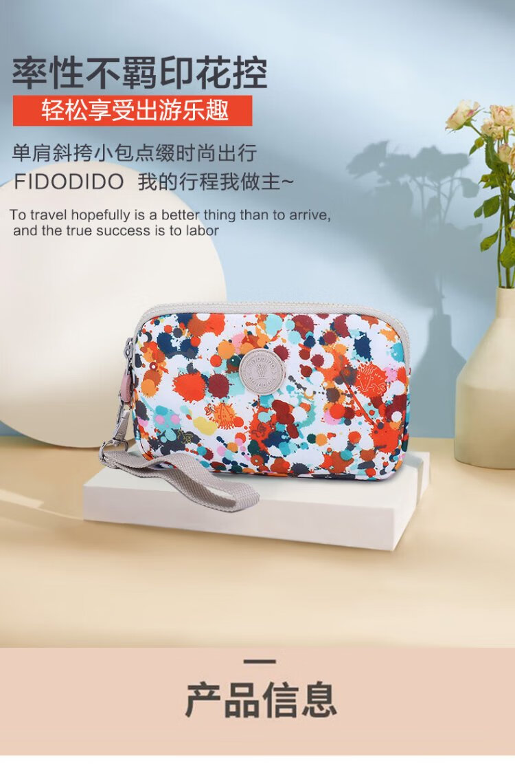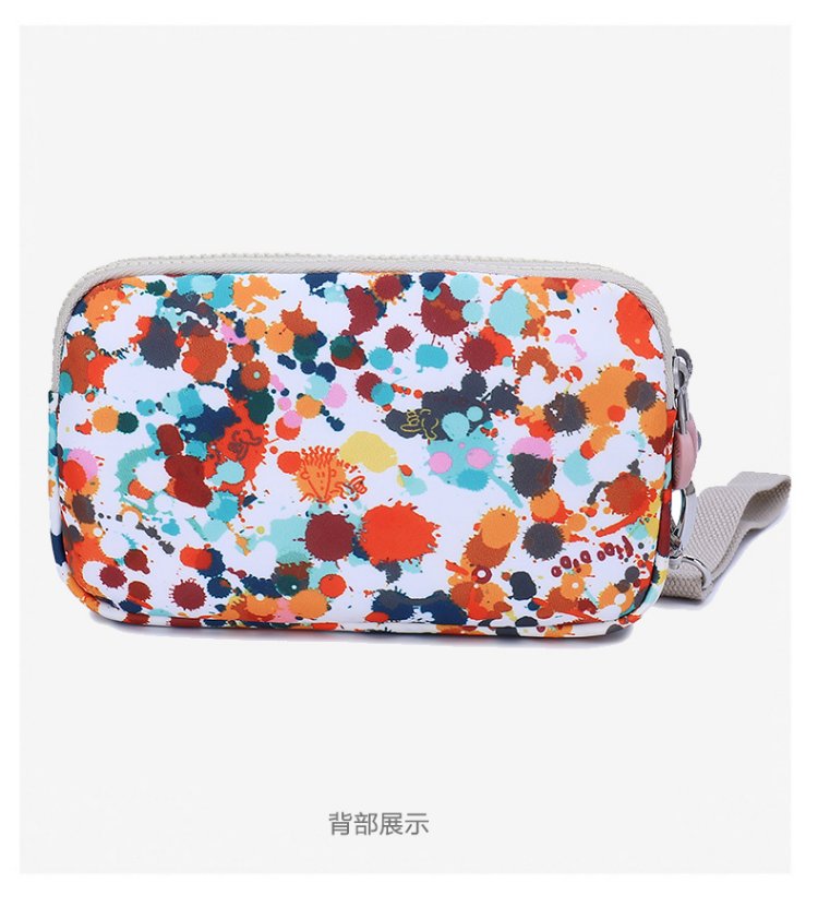 Fido Dido clutch bag for women Korean version trendy fashion ladies clutch bag small coin purse wrist bag new light luxury small bag gift splash flower (with long shoulder strap)