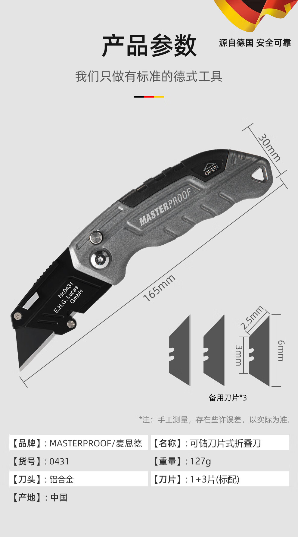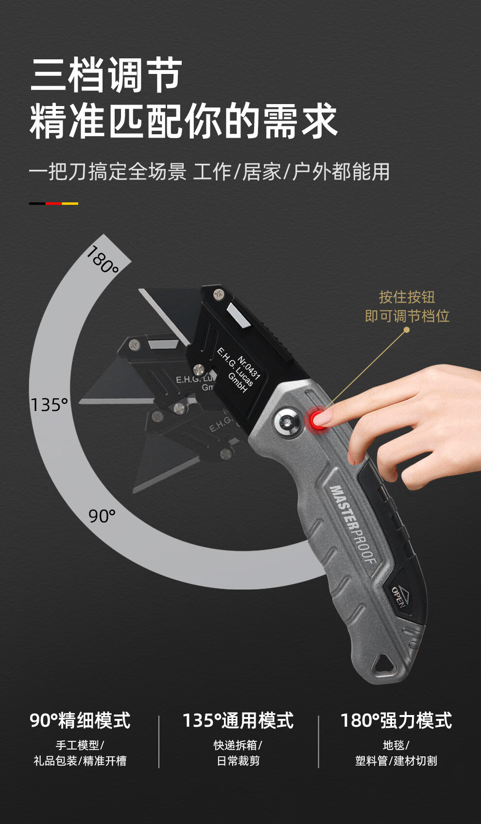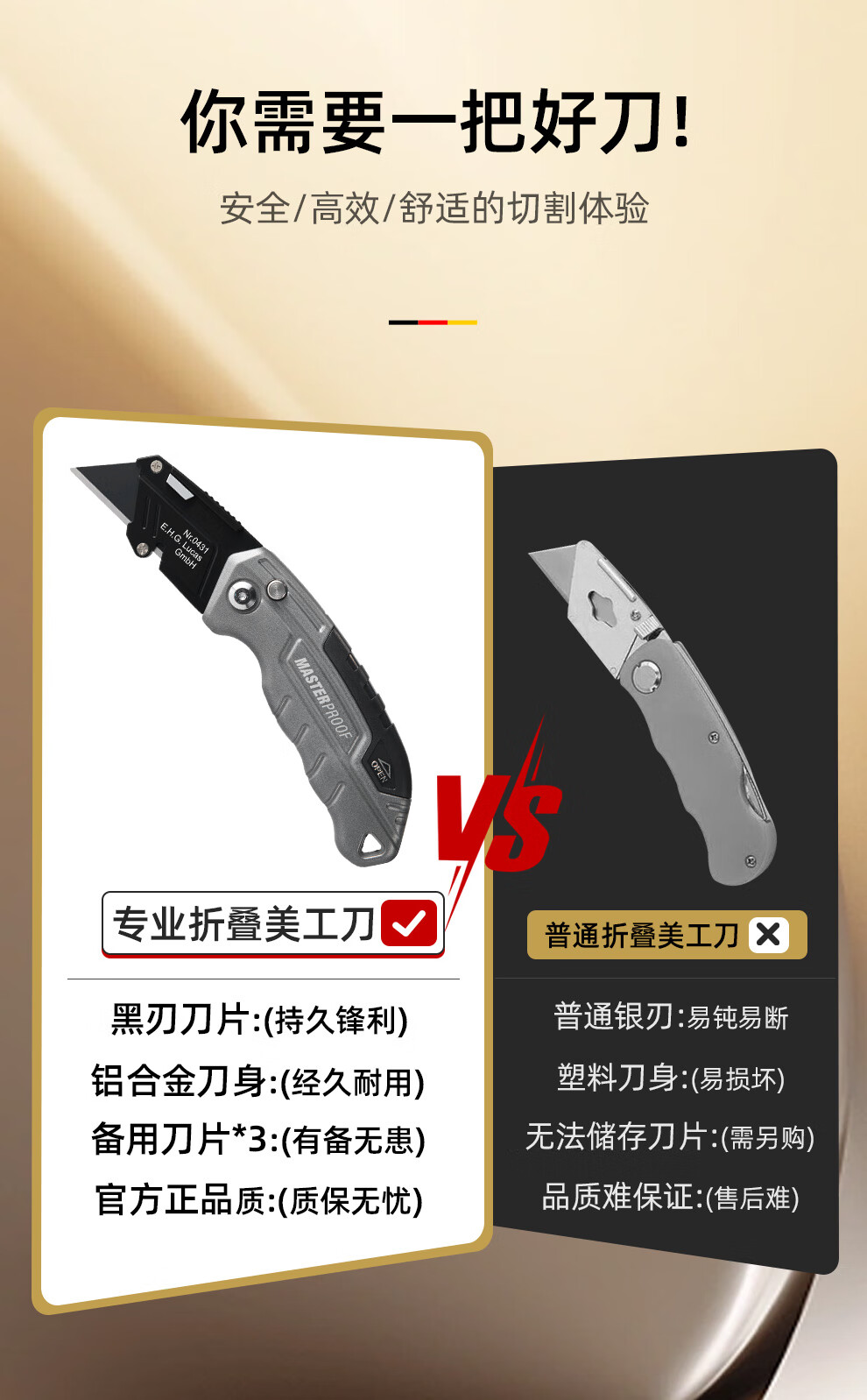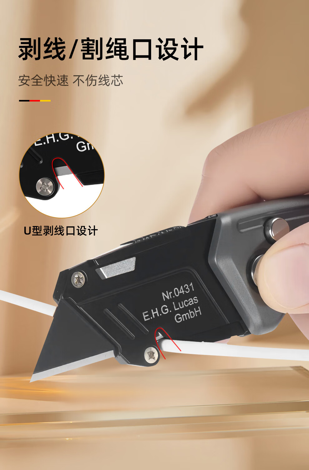 MASTERPROOF special electrician's knife for cable stripping, heavy-duty utility knife, cable stripping knife, straight-edged electrician's knife, curved blade cutting knife, hook knife