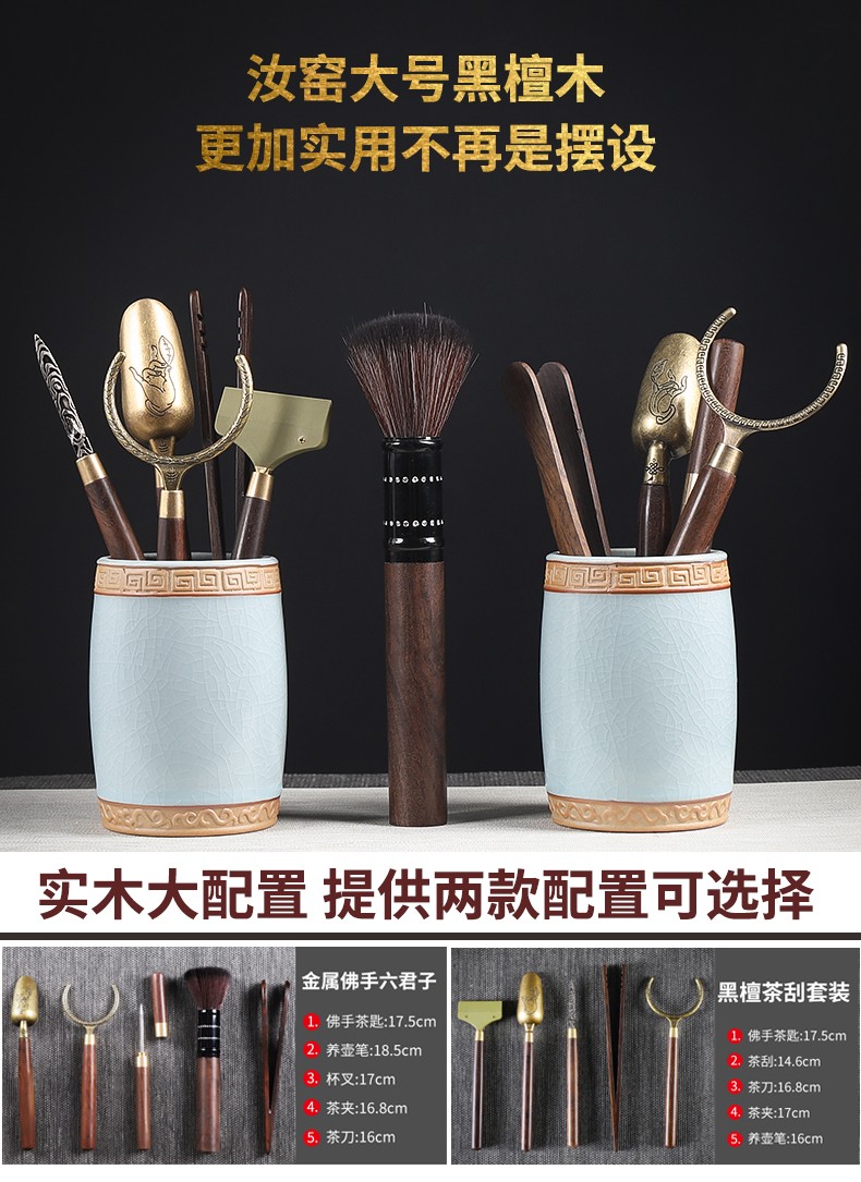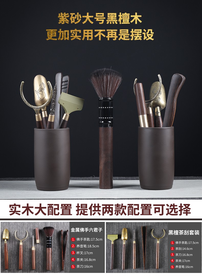 Haoxiang Tea Ceremony Six Gentlemen Set Ceramic Kung Fu Tea Set Accessories 6 Gentlemen Complete Tea Making Tools Tea Clamp Spoon Knife Purple Clay Tea Ceremony Bucket + Buddha's Hand Tea Ceremony
